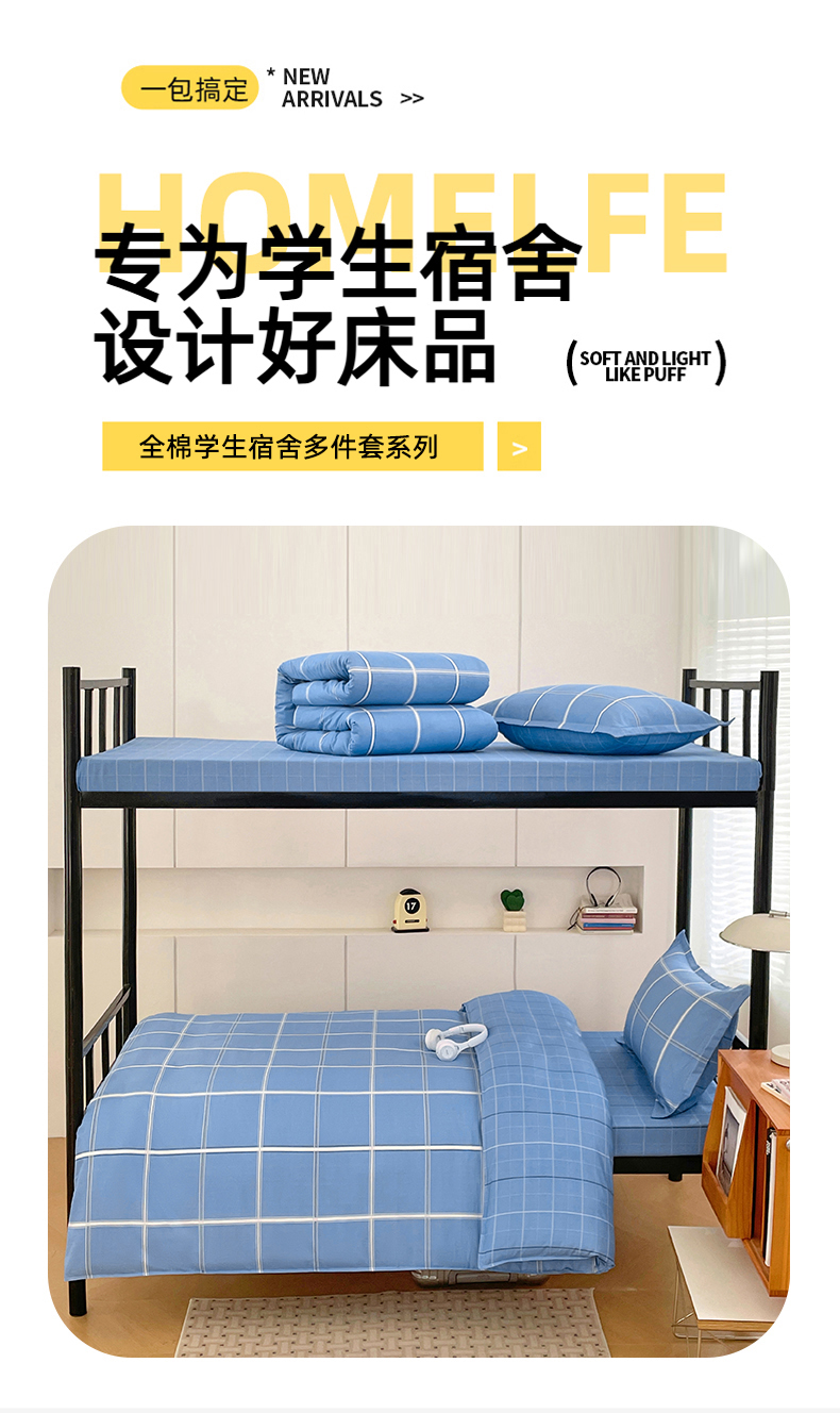 当前位置: 91家纺网 > 商品网购 > 床品套件 > 三件套 > 锦润家纺2025新款全棉13372学生三件套纯棉宿舍六件套 普兰德利-蓝