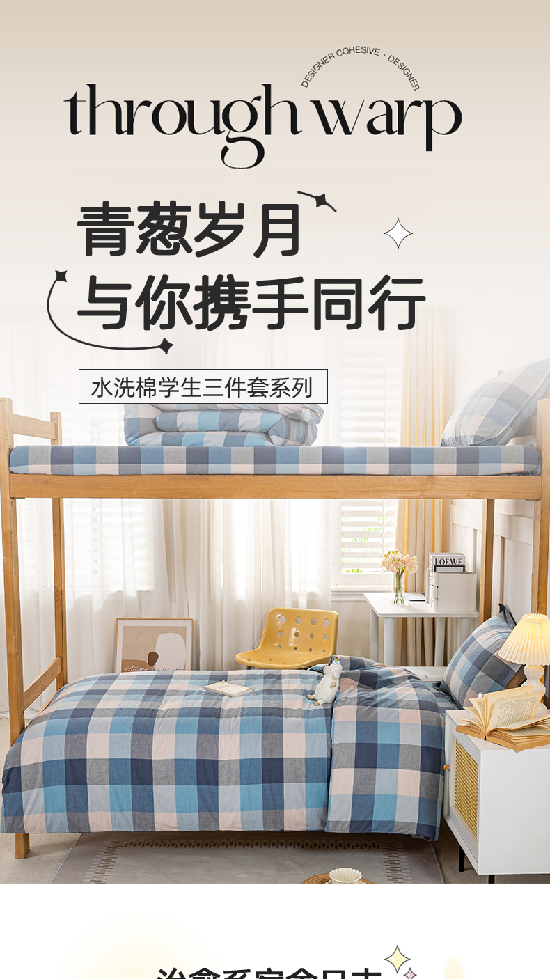 当前位置: 91家纺网 > 商品网购 > 床品套件 > 四件套 > 水洗棉四件套 > 锦润家纺 2025新款色织水洗棉三件套学生三件套全棉三件套大礼包