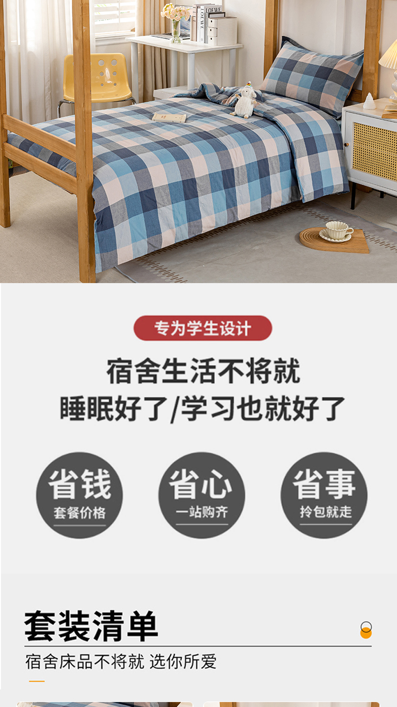 • 91家纺网 家纺一手货源 找家纺 锦润家纺 2025新款色织水洗棉三件套学生三件套全棉三件套大礼包