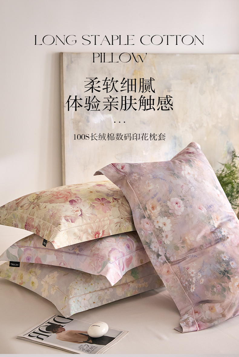 商品名称:禾时 2025新款A类100S长绒棉全棉数码印花单枕套 茉莉芬芳