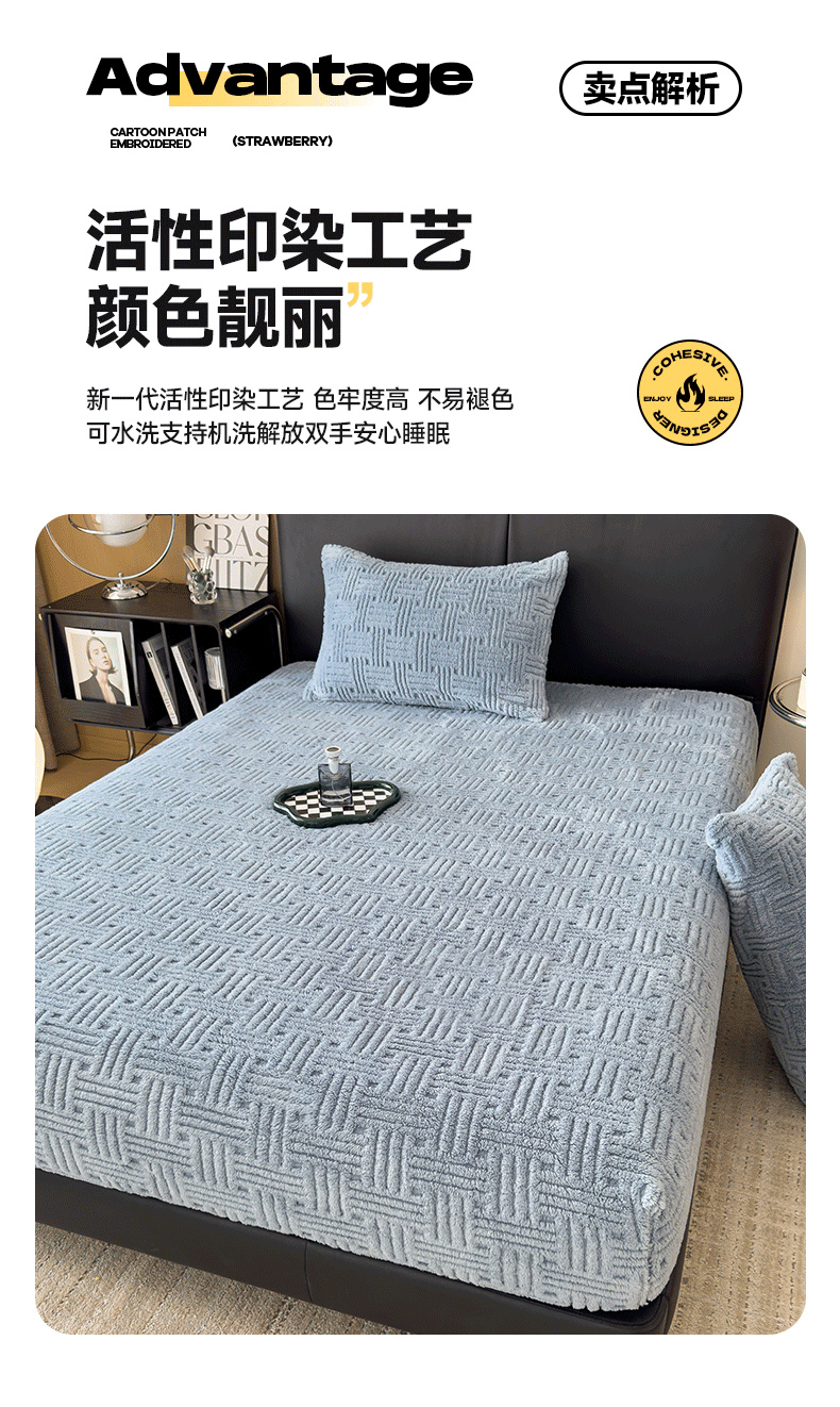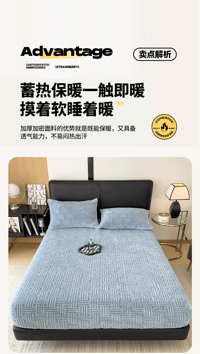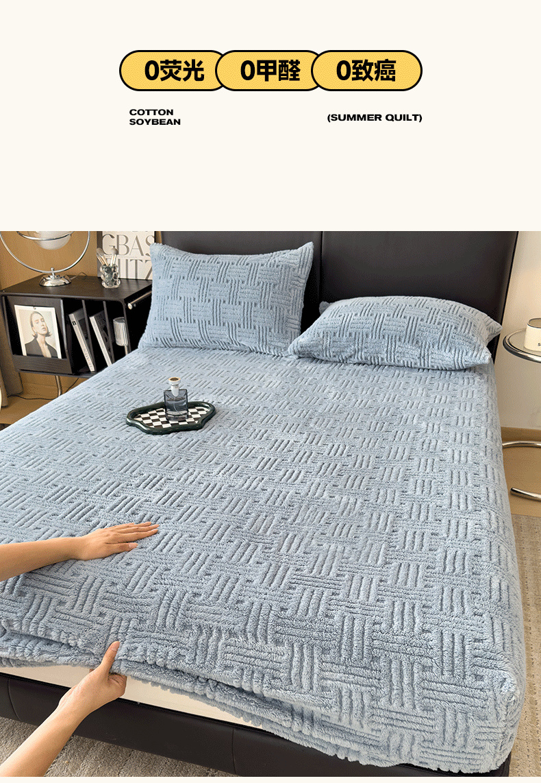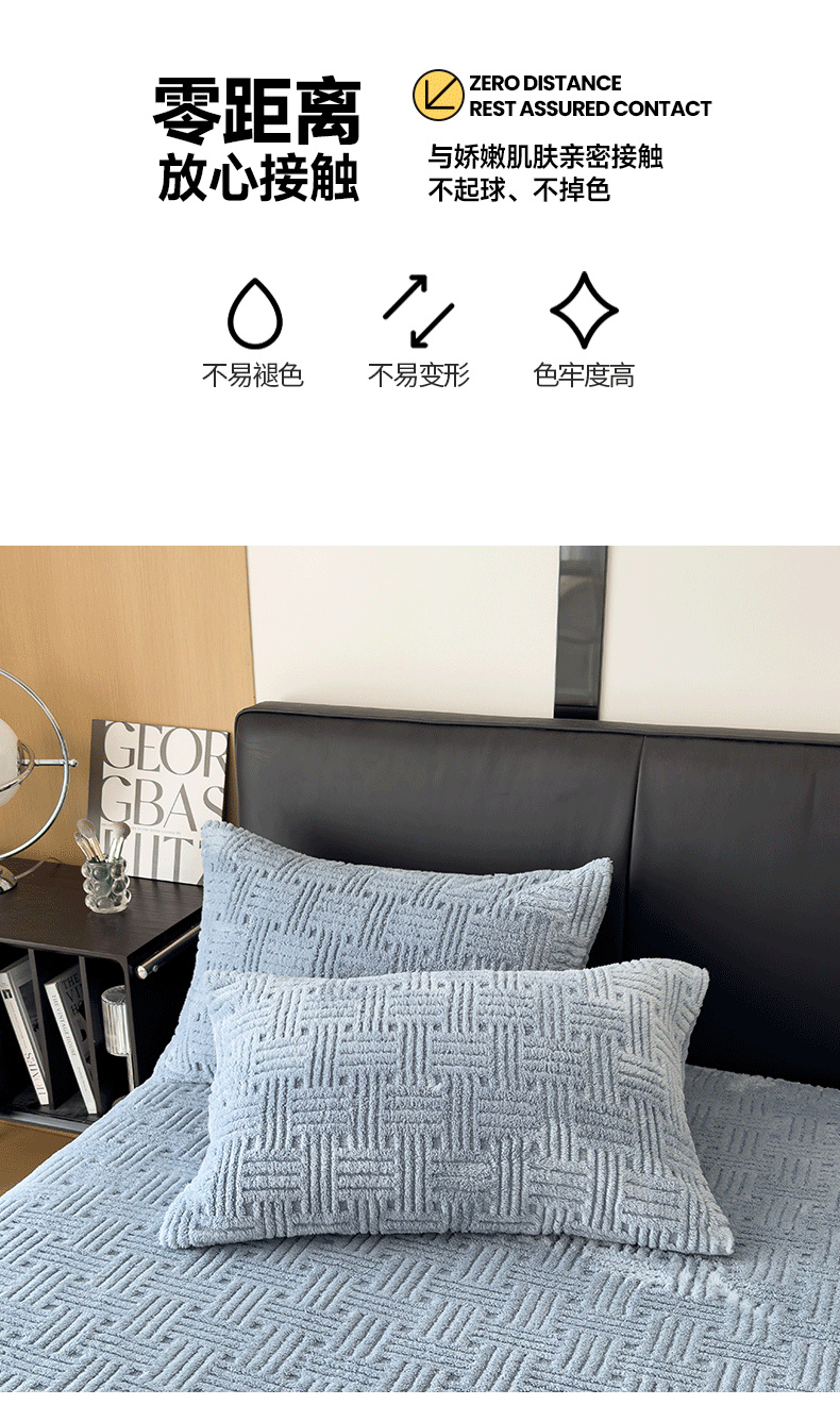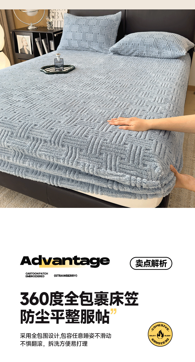 (总)欧邦 2025新款提花暖阳绒单床笠,苍穹蓝,初雪白,海棠粉,慕斯灰,青瓷绿,檀木咖