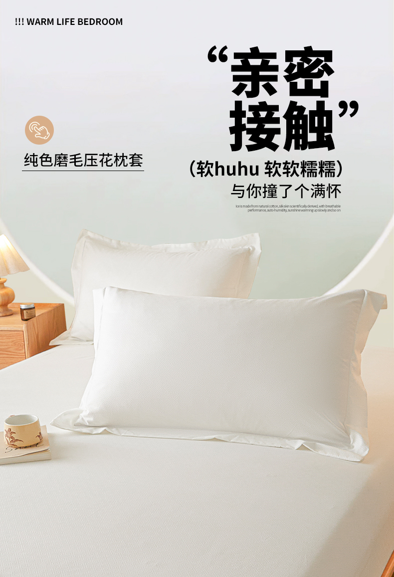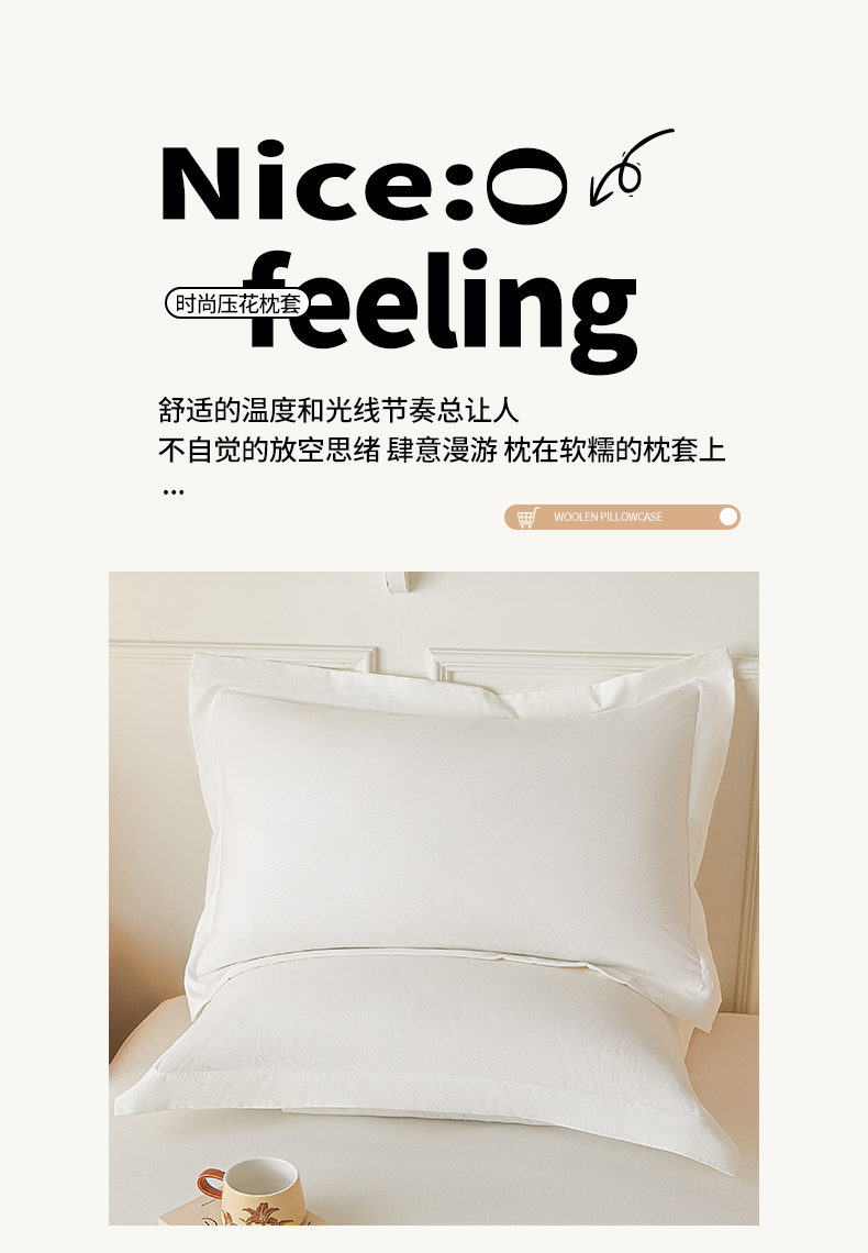 露梦家纺 2025新款纯色磨毛压花简约枕套 奶昔白