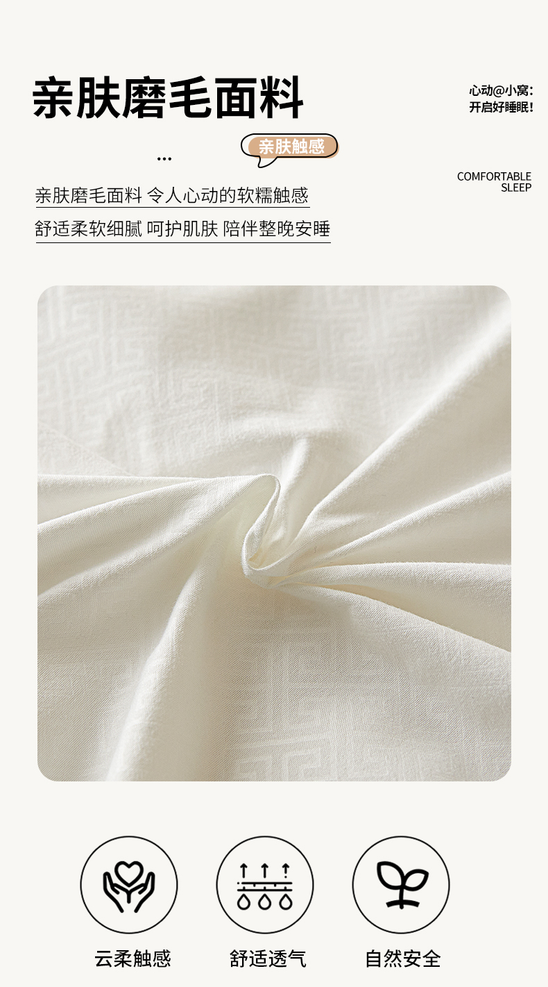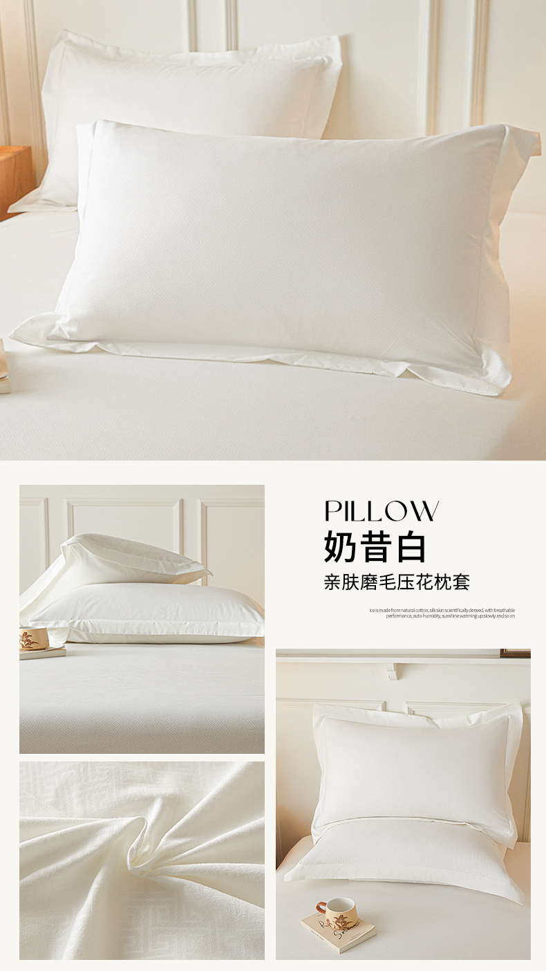商品名称:露梦家纺 2025新款纯色磨毛压花简约枕套 奶昔白