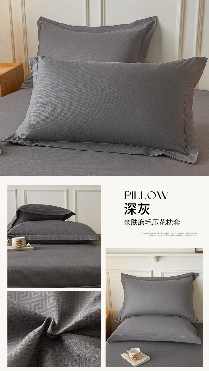 (总)露梦家纺 2025新款纯色磨毛压花简约枕套,暗夜黑,丁香紫,豆沙,蓝色,抹茶绿,奶昔白,浅灰,深灰,松石绿,香槟