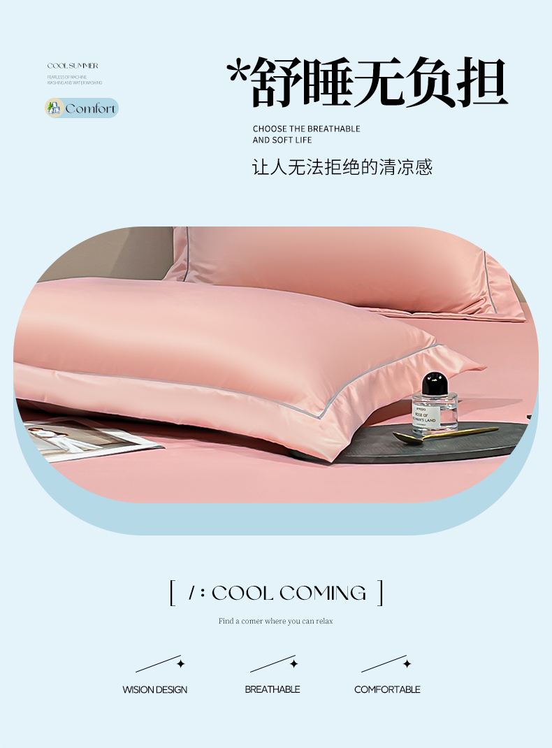 商品名称:露梦家纺 2025新款纯色冰丝凉感星辰枕套 豆沙