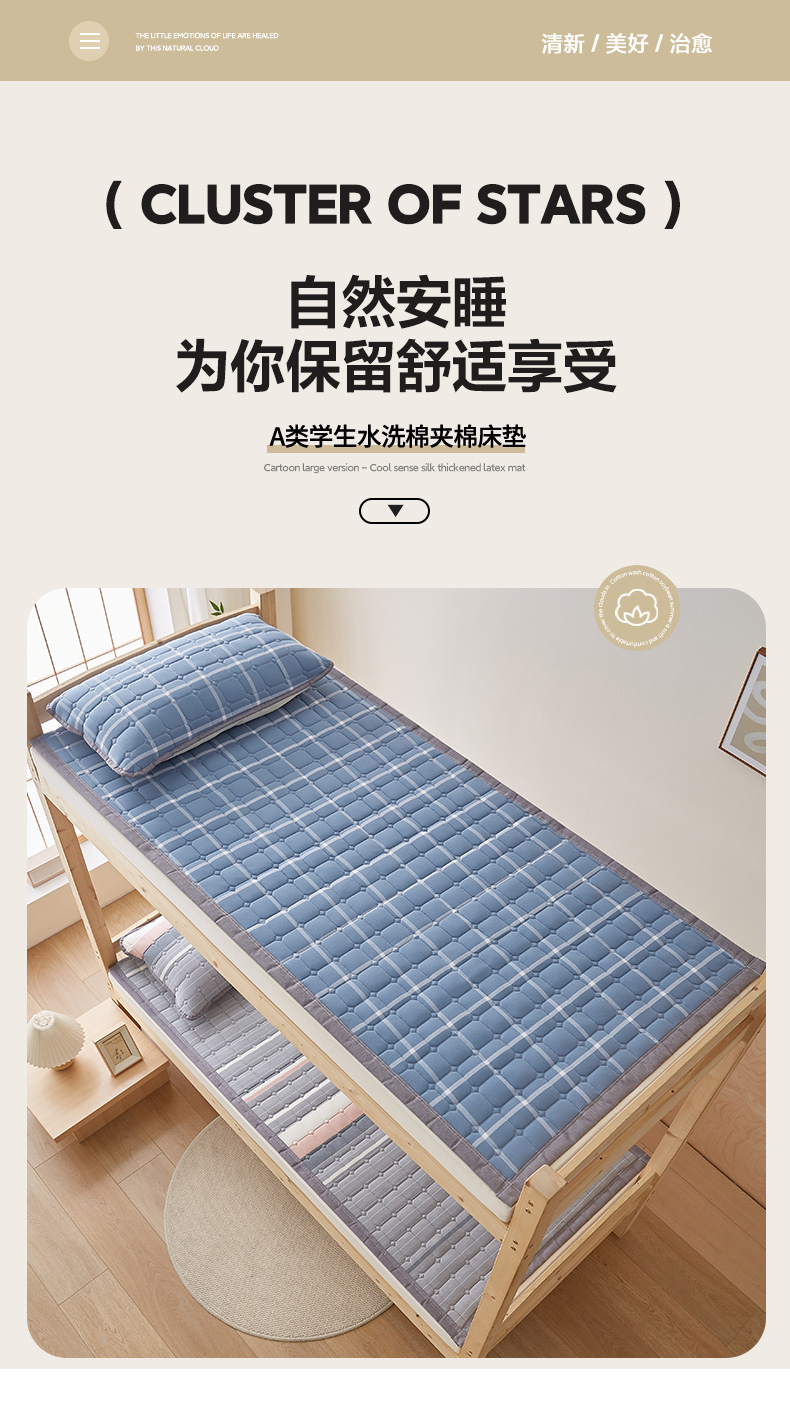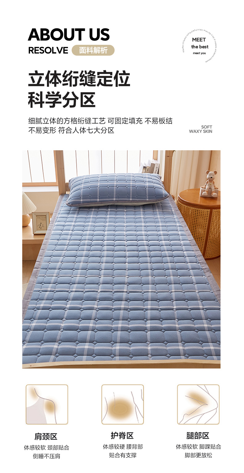 当前位置: 91家纺网 > 商品网购 > 床垫/床褥 > 暖季家纺 2025新款A类水洗棉学生絮叠床护垫 絮叠床护垫-兰灰中格