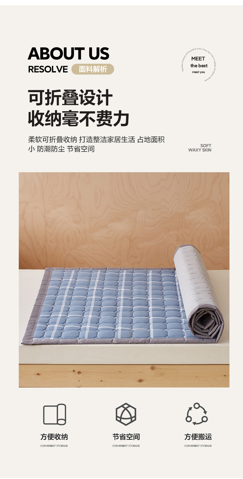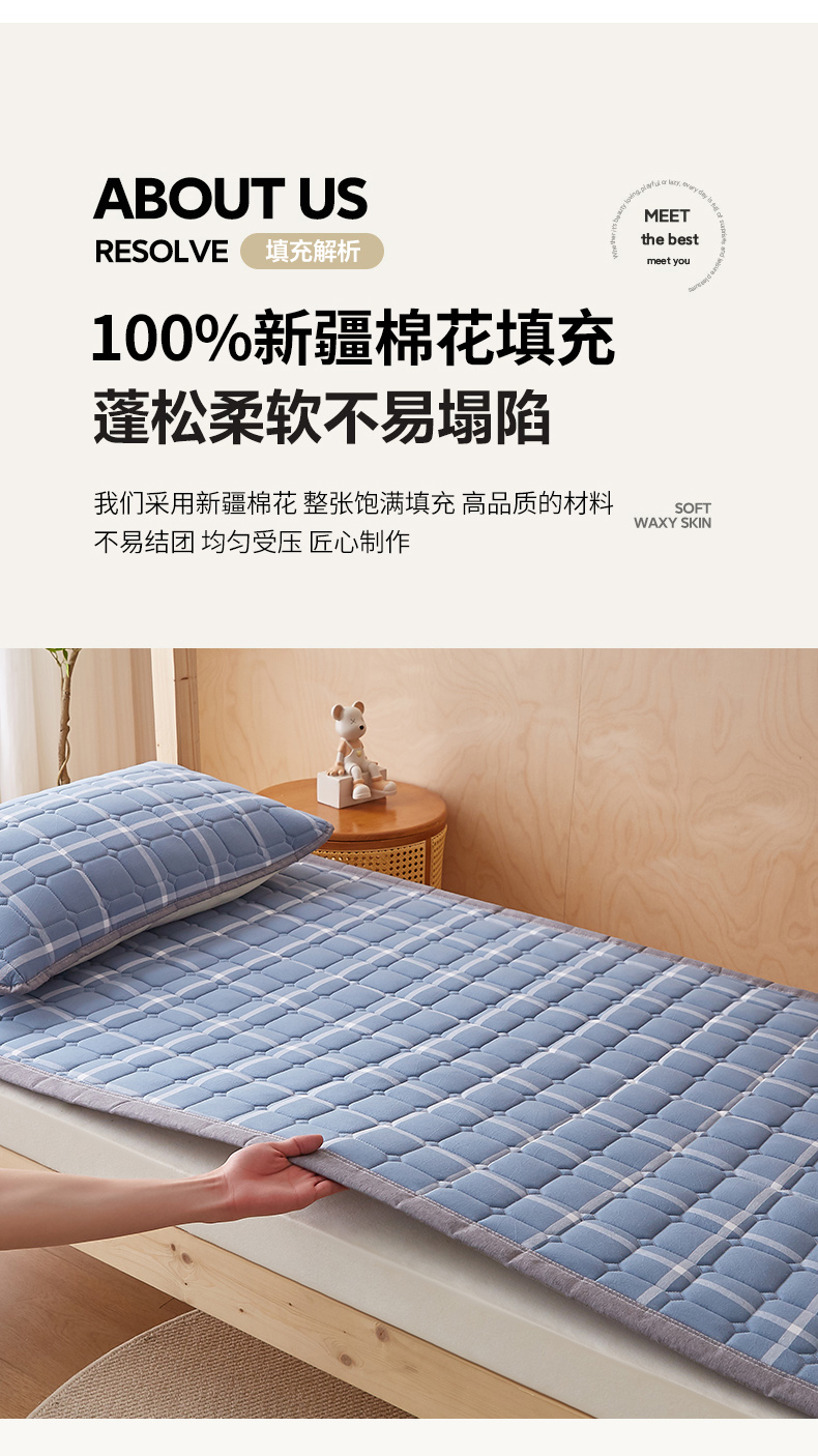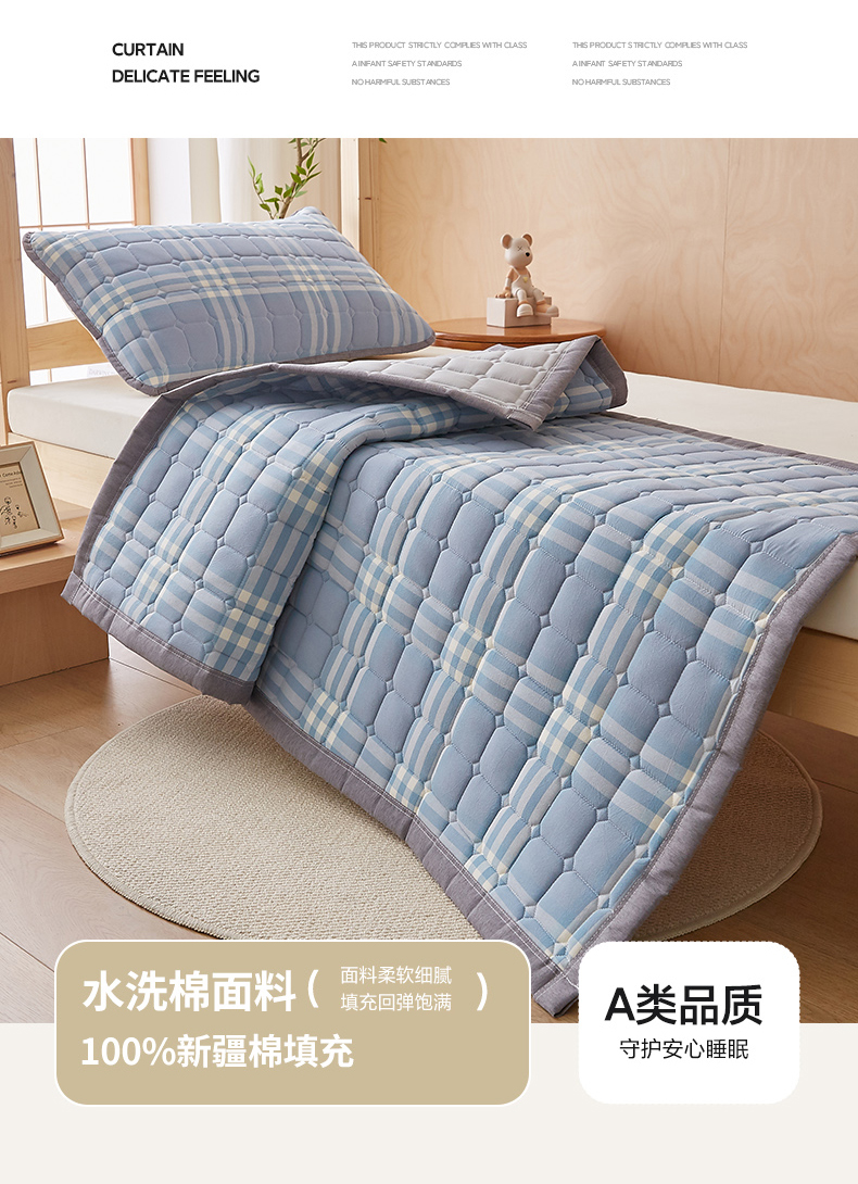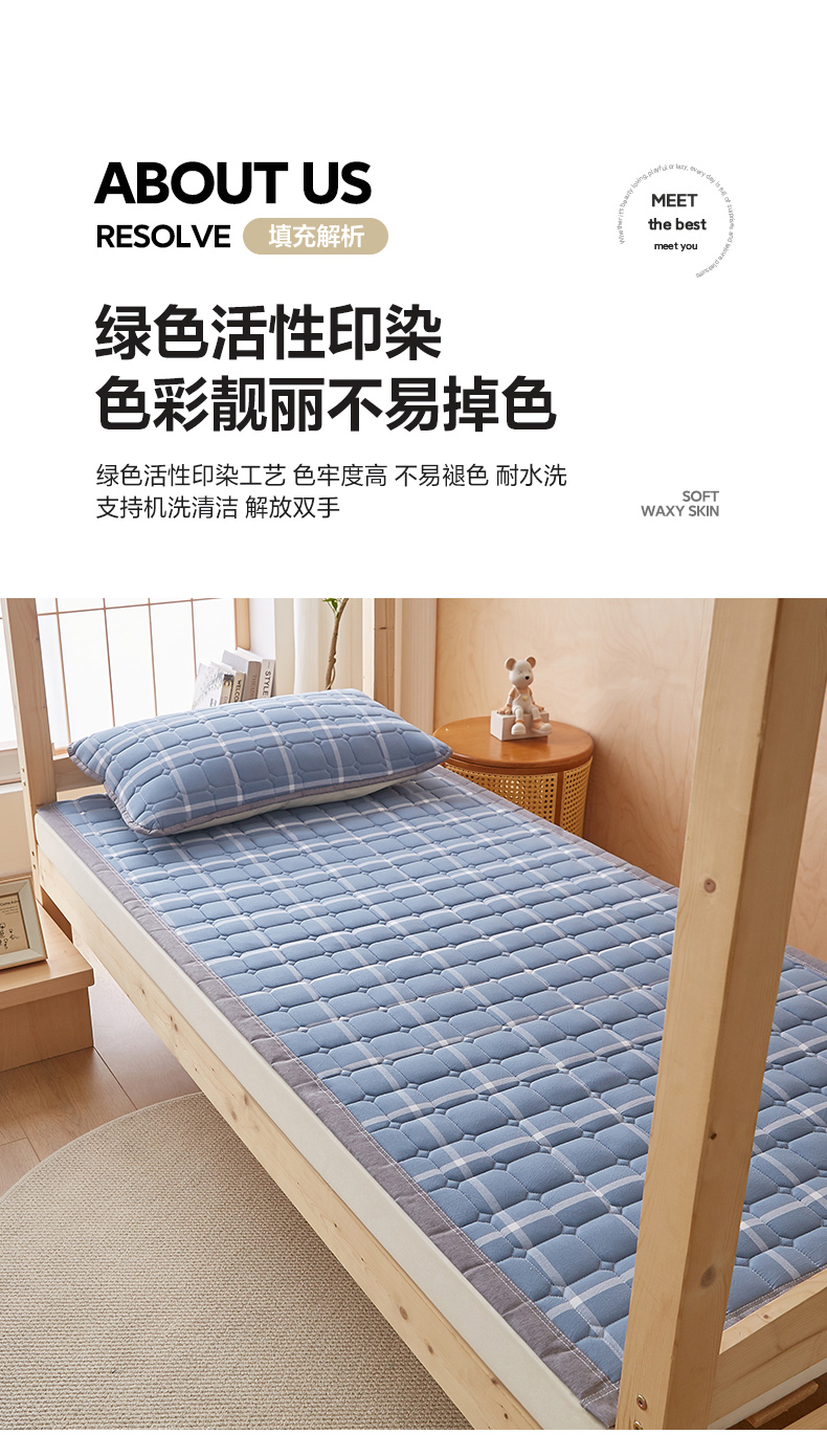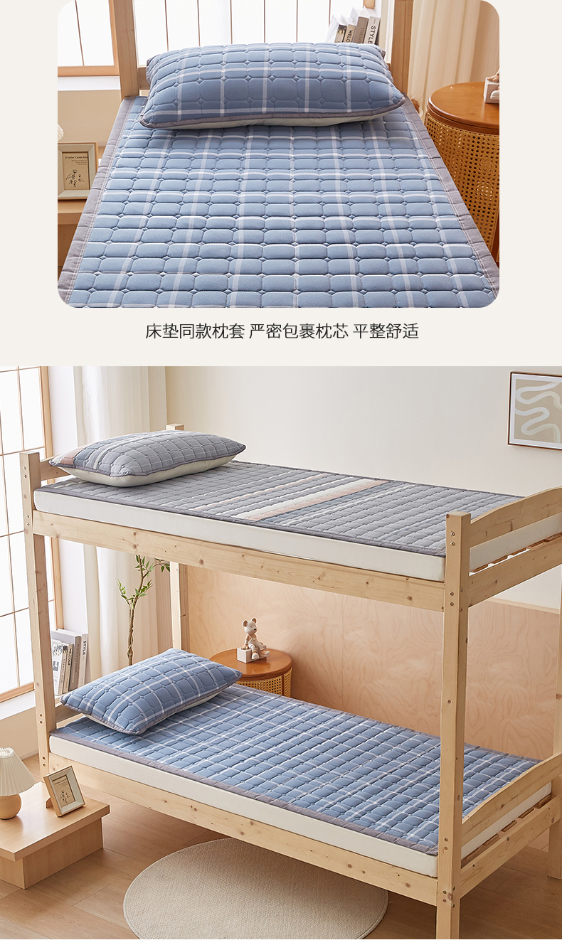 • 91家纺网 家纺一手货源 找家纺 暖季家纺 2025新款A类水洗棉学生絮叠床护垫 絮叠床护垫-兰灰中格