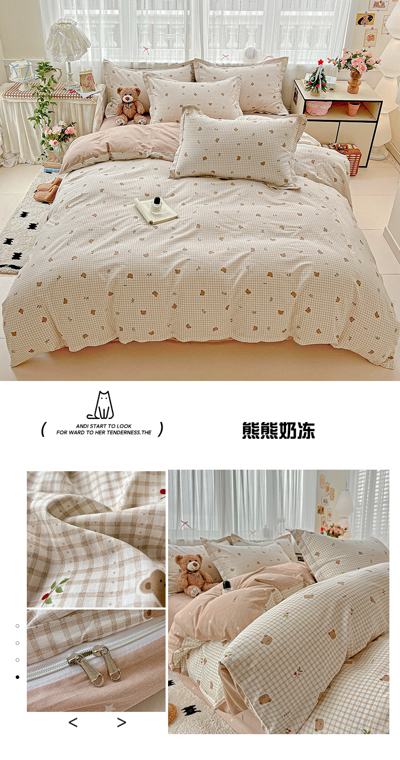 当前位置: 91家纺网 > 商品网购 > 床品套件 > 四件套 > 全棉普通四件套 > 依庭2025春夏新款12868全棉纯棉四件套 熊熊奶冻