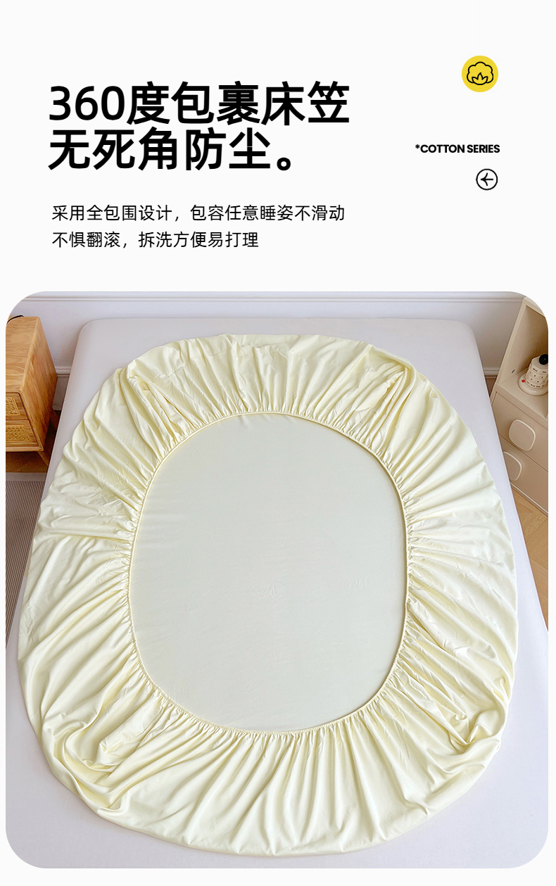 • 91家纺网 家纺一手货源 找家纺 彩韵家纺 2025新款亲肤舒适水洗m单床笠 奶黄