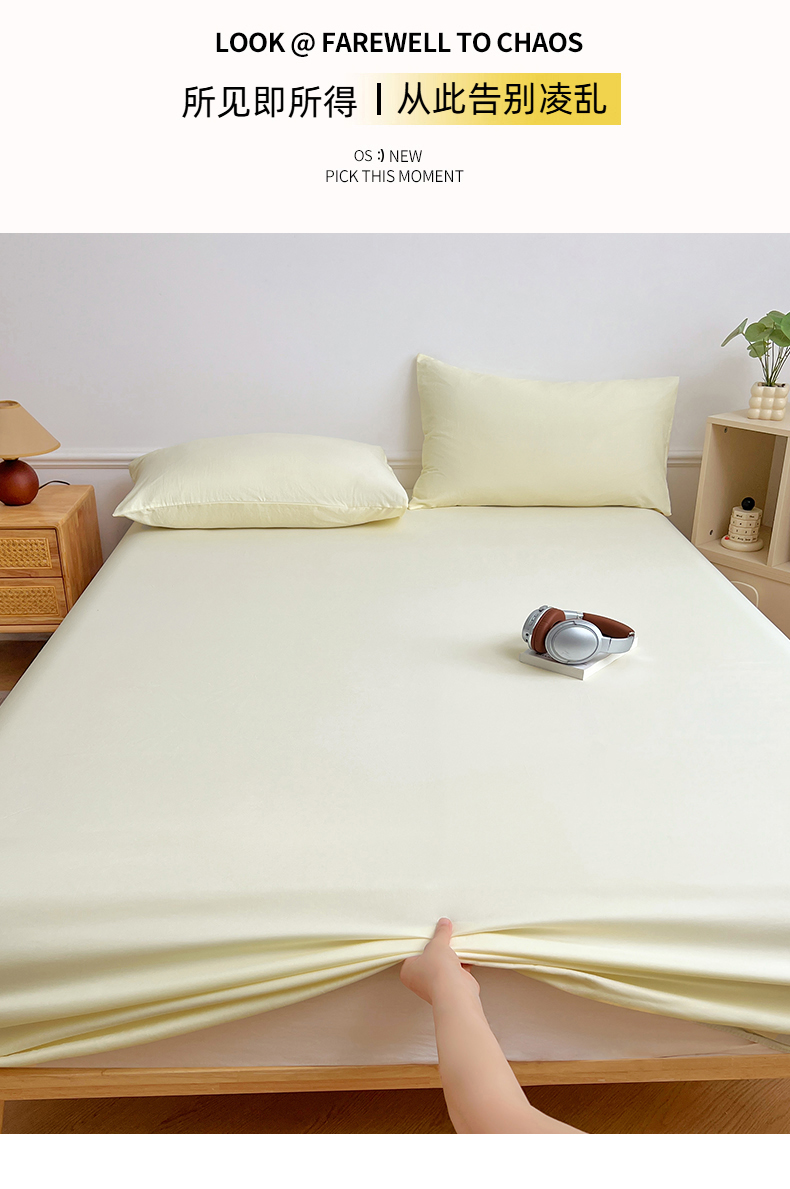 彩韵家纺 2025新款亲肤舒适水洗m单床笠 奶黄