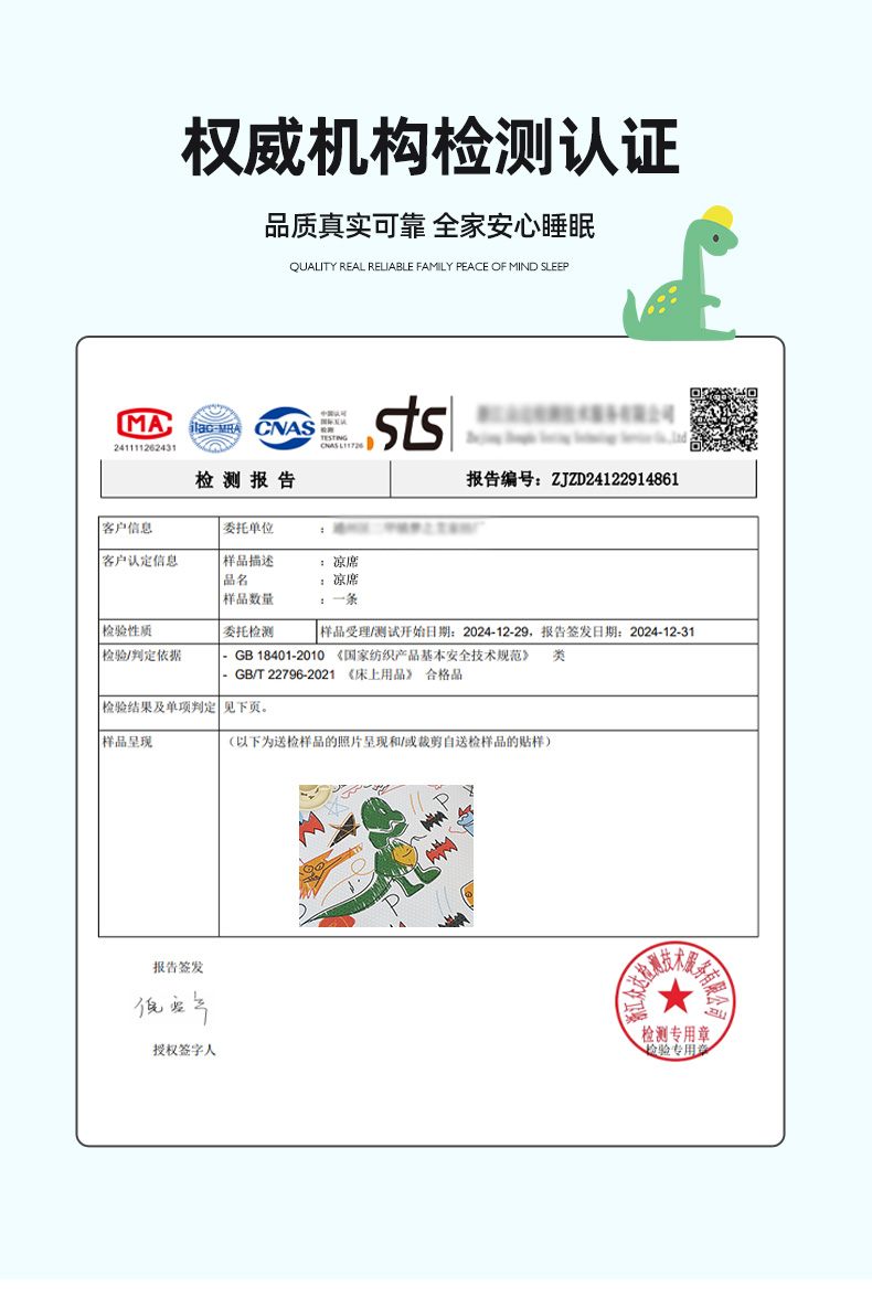 当前位置: 91家纺网 > 商品网购 > 床上用品 > 凉席 > 小叮当家纺仓储工厂店 (提供买家秀 爆款花型 不断货)2025新款冰豆豆儿童卡通凉席床席 恐龙