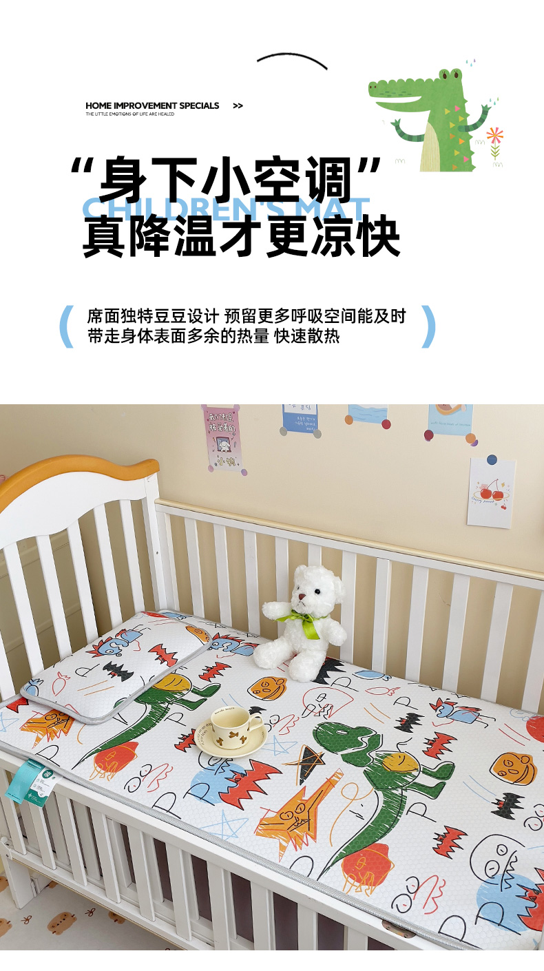 小叮当家纺仓储工厂店 (提供买家秀 爆款花型 不断货)2025新款冰豆豆儿童卡通凉席床席 恐龙
