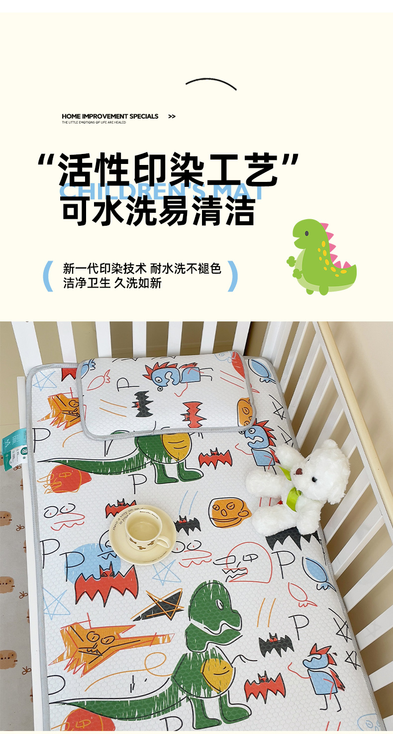 • 91家纺网 家纺一手货源 找家纺 小叮当家纺仓储工厂店 (提供买家秀 爆款花型 不断货)2025新款冰豆豆儿童卡通凉席床席 恐龙
