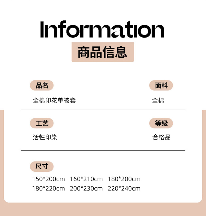 150x200cm单被套+枕套一只