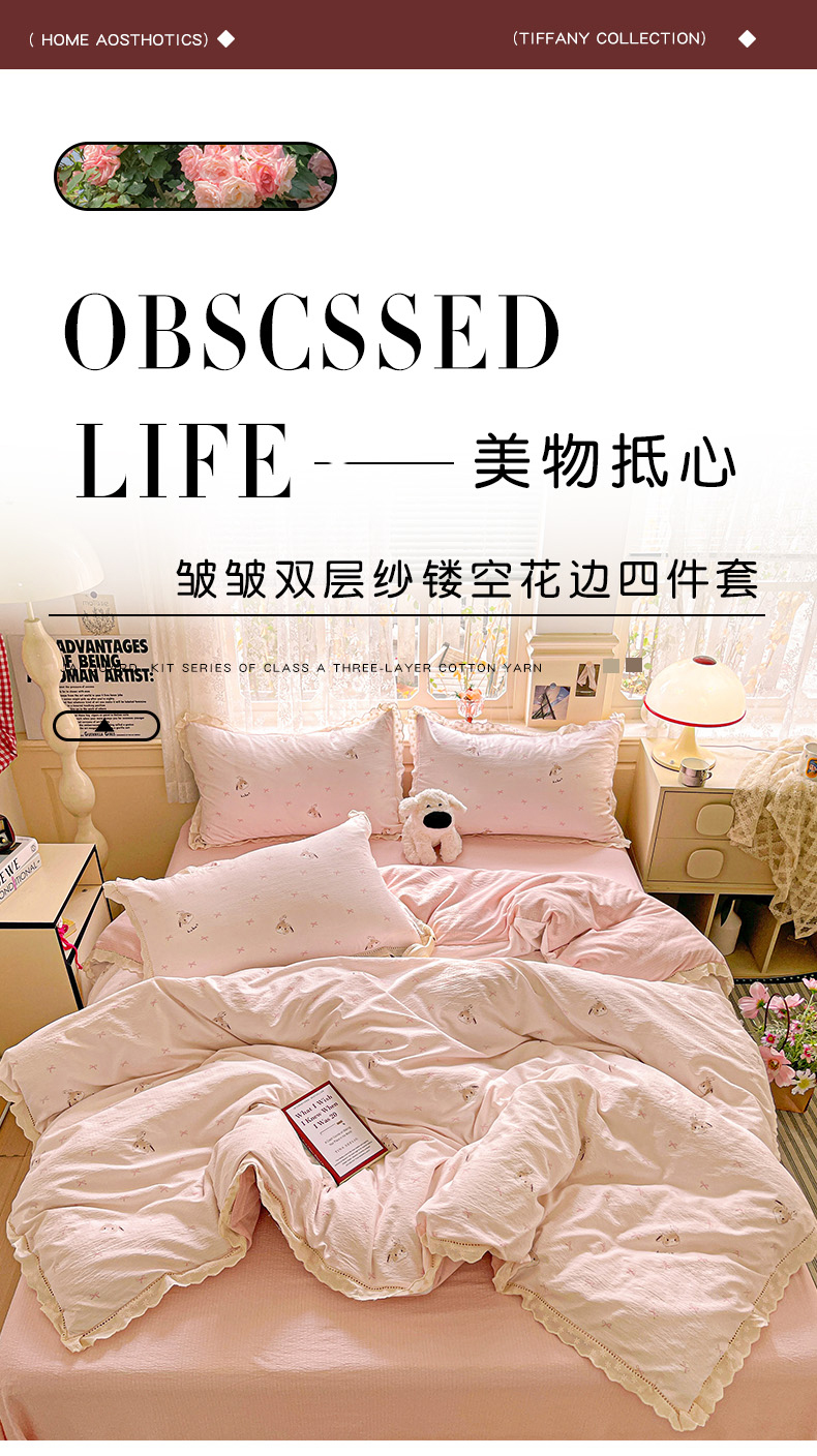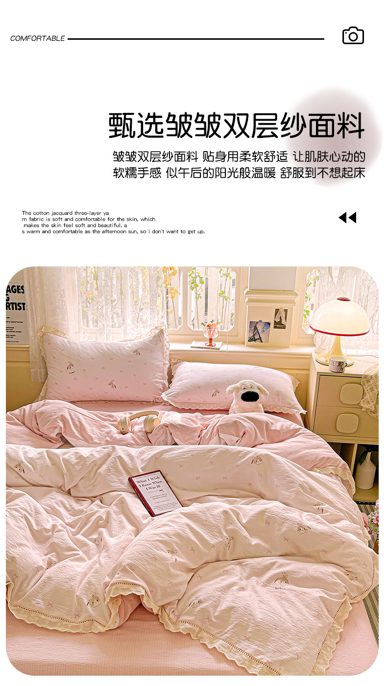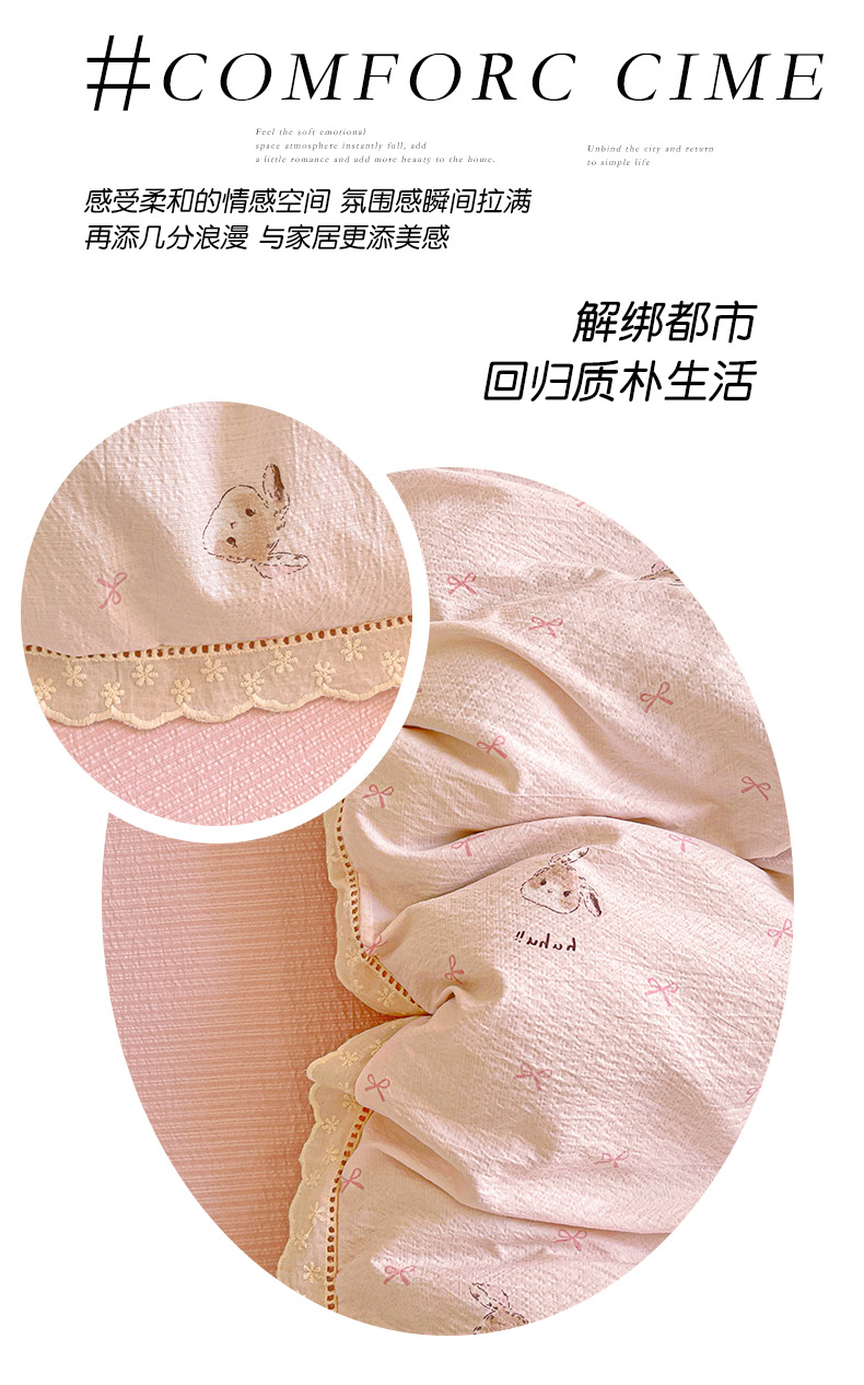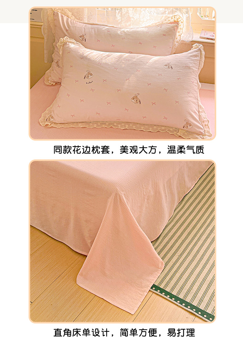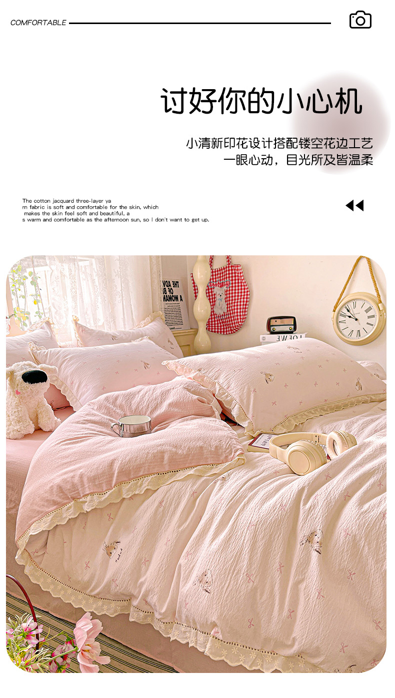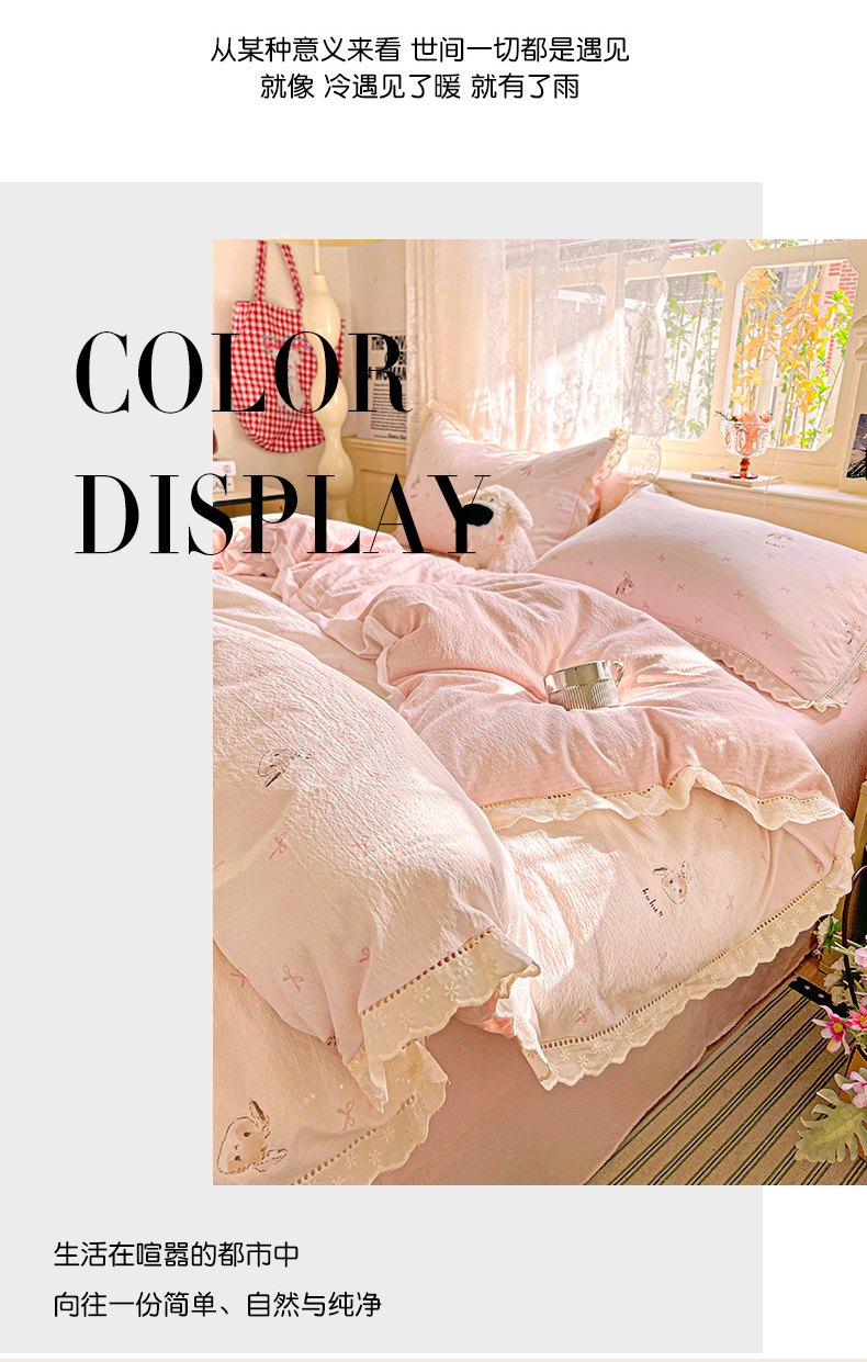 商品名称:水木坊 2025新款皱皱双层纱镂空花边四件套 兔叽奶糖