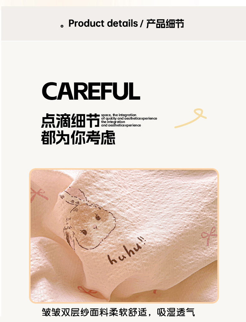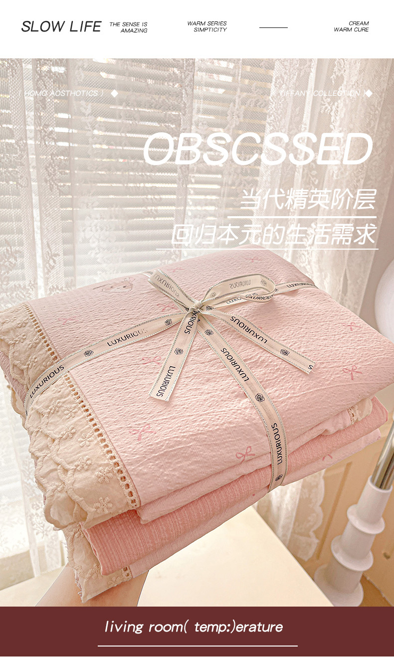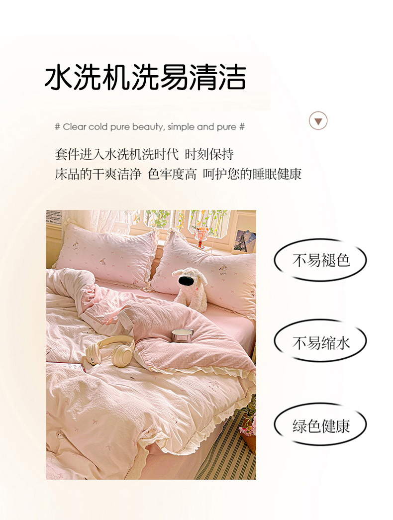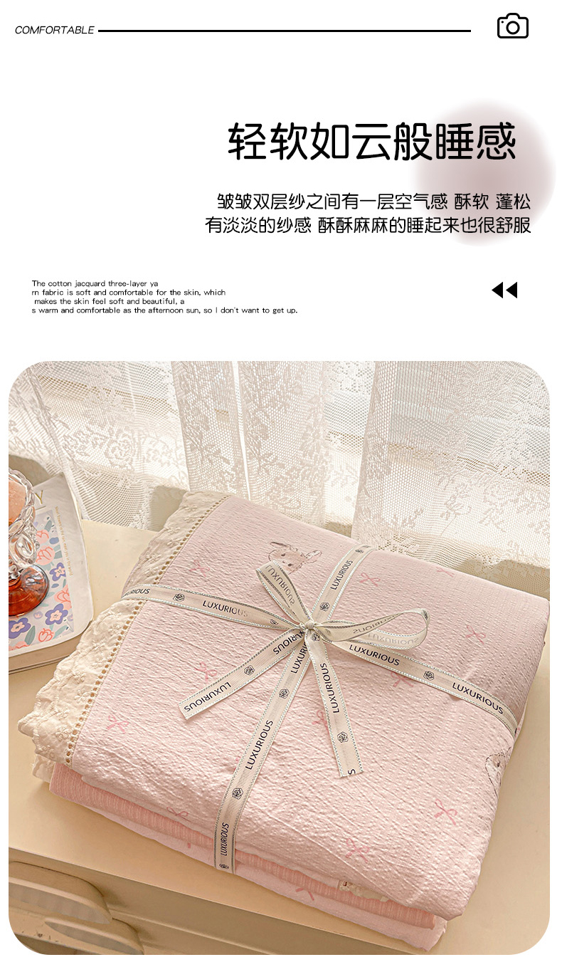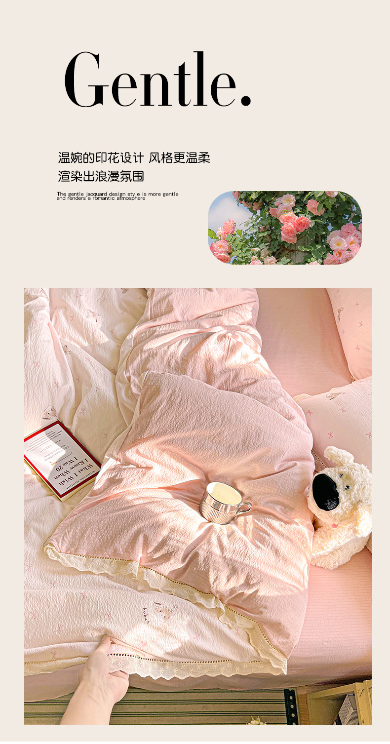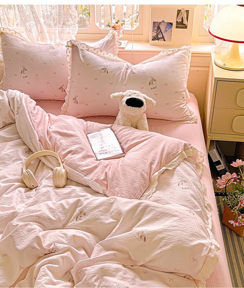 商品名称:水木坊 2025新款皱皱双层纱镂空花边四件套 兔叽奶糖