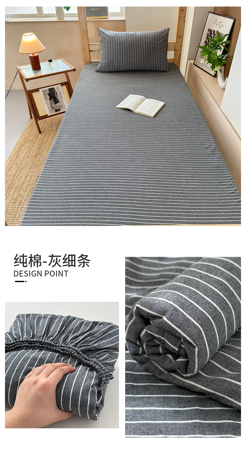 • 91家纺网 家纺一手货源 找家纺 北欧良品2025新款色织水洗棉学生单品床笠 纯棉-灰细条