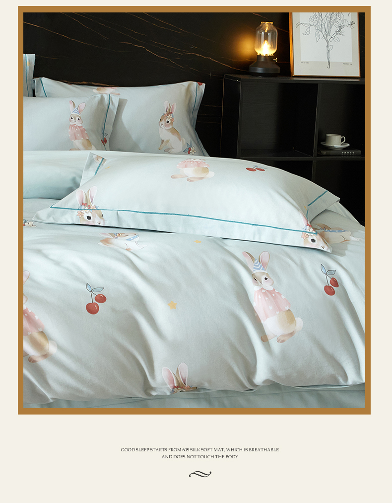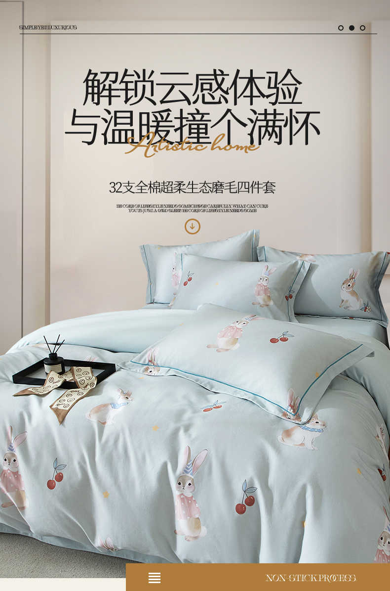 曼秀琳 2025秋冬新款32支超柔生态磨毛四件套 小萌兔-绿
