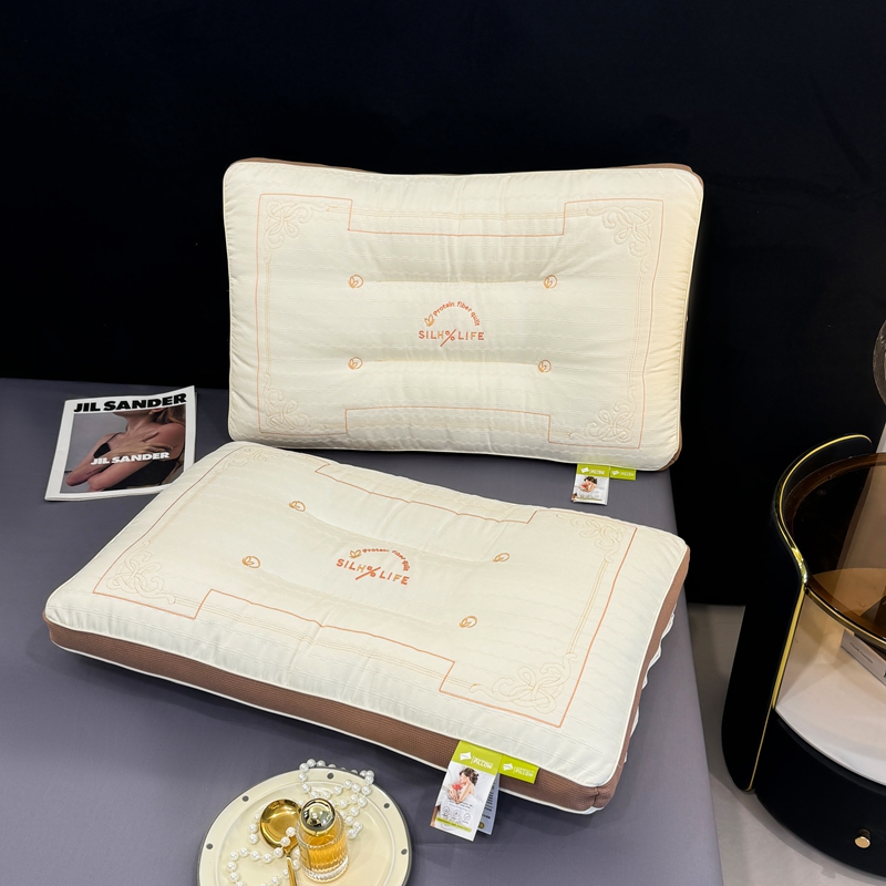(总)圣之寐 2025新款蚕丝刺绣养 颜枕枕头枕芯,单边低枕,单边中枕,立体高枕