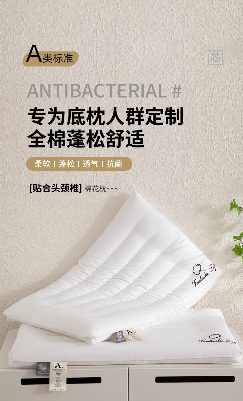 商品名称:(总)圣之寐 2025新款全棉A类母婴级儿童学生成人新疆棉花低枕头枕芯