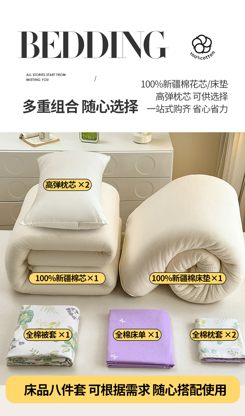 西域种棉人·千百笠 2025新款全棉纯棉大学生宿舍100%新疆棉花被子被褥一整套枕头床垫三件套六件套 兰亭花絮