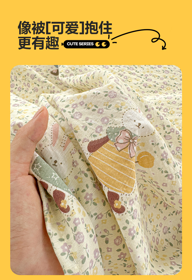 • 91家纺网 家纺一手货源 找家纺 多品家纺 2025新款超柔云感双层纱单床单 床单单件 泡芙兔兔