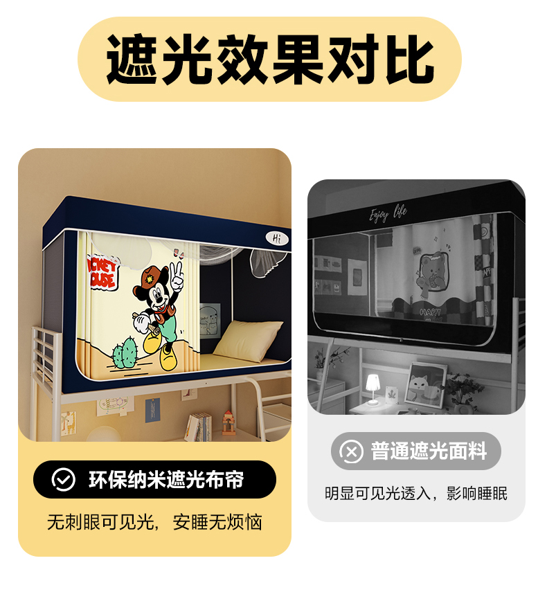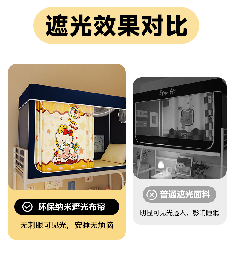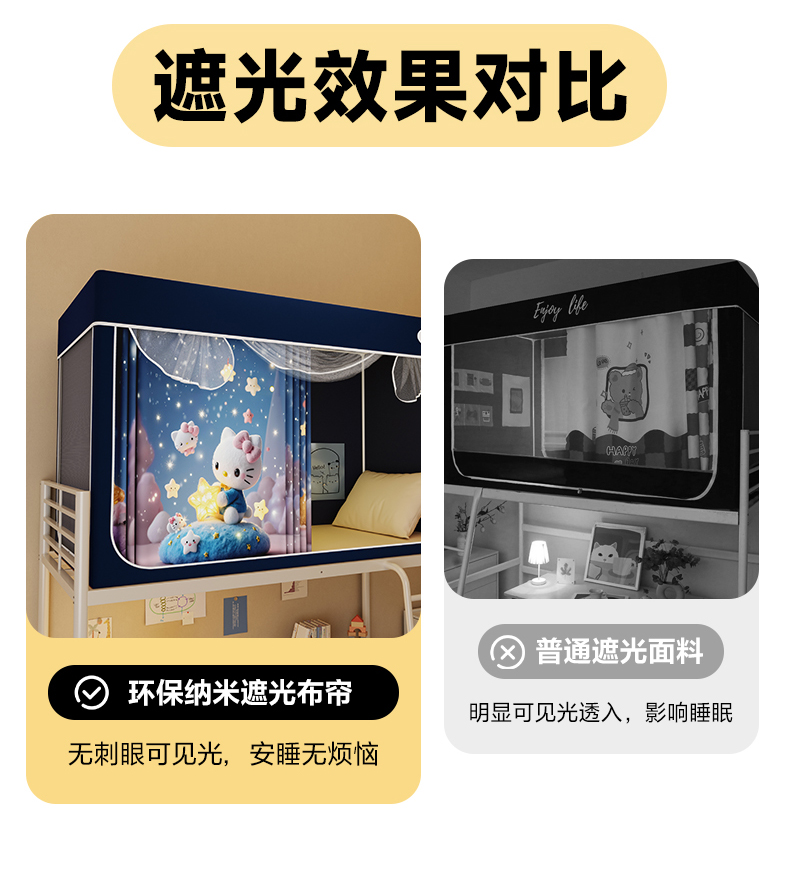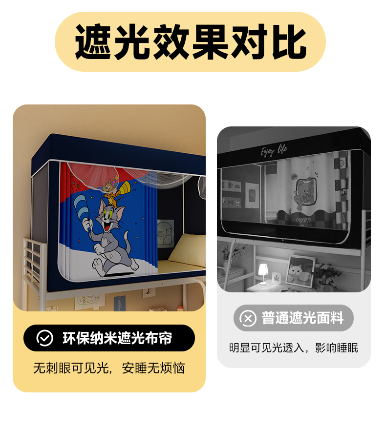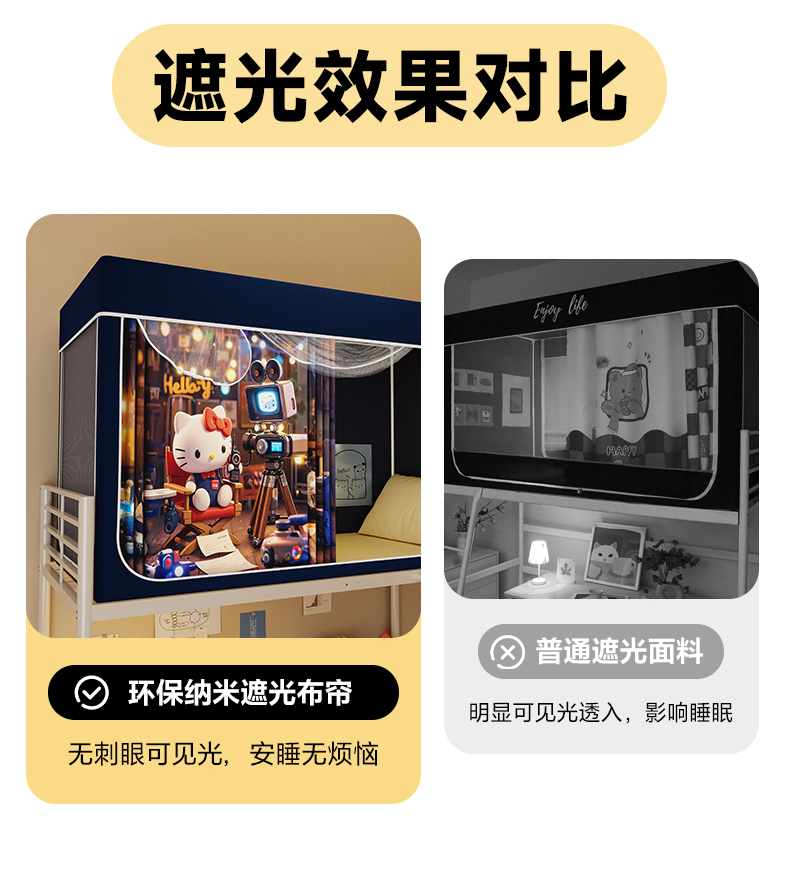 (总)安金蚊帐2025新款防蚊遮光一体99%强遮光学生宿舍上下铺遮光学生蚊帐-黄色系列,好学布布,团布布,星泡泡,贪吃猫,野餐猫,好拍档,好学卡卡,小花熊,尼尼熊,小猫莉