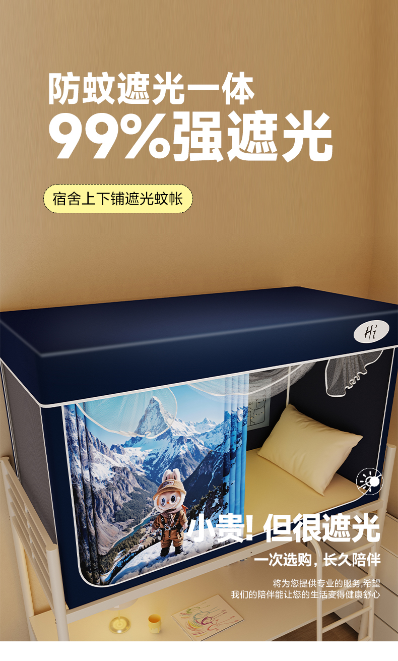 商品名称:(总)安金蚊帐2025新款防蚊遮光一体99%强遮光学生宿舍上下铺遮光学生蚊帐-藏蓝系列