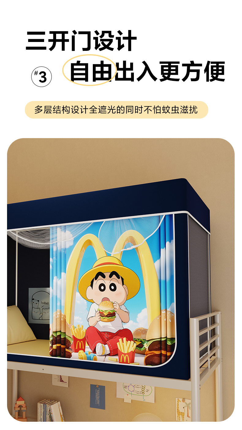 (总)安金蚊帐2025新款防蚊遮光一体99%强遮光学生宿舍上下铺遮光学生蚊帐-灰色系列,多彩布布,搞怪小新,奇奇一家,探险布布,窜窜鼠,拍拍熊
