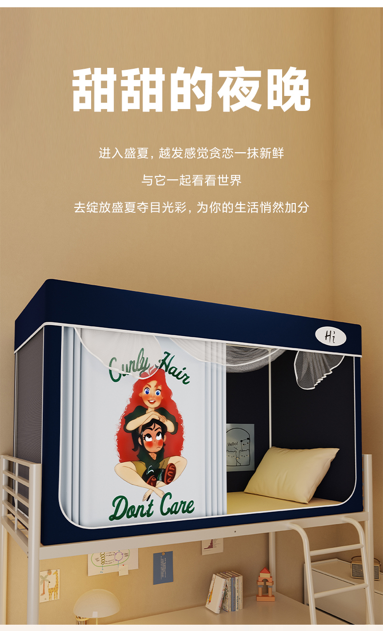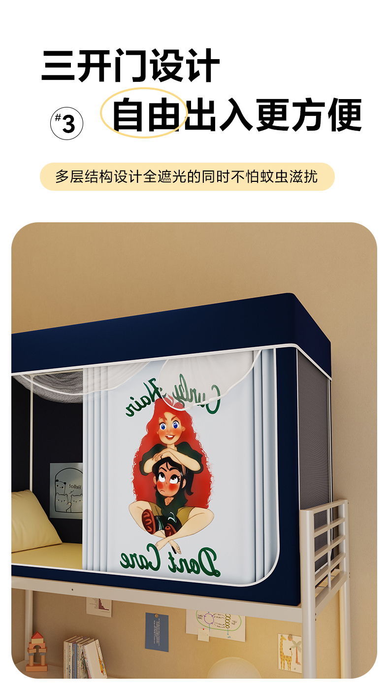 当前位置: 91家纺网 > 商品网购 > 床上用品 > 蚊帐 > 学生蚊帐 > 安金蚊帐2025新款防蚊遮光一体99%强遮光学生宿舍上下铺遮光学生蚊帐-藏蓝系列 红发女孩