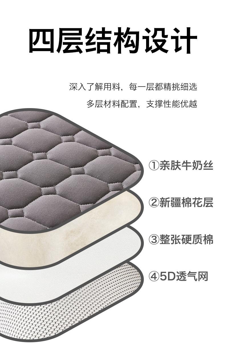 (总)芊梵床垫 2026新款多多爆款立体硬质棉床垫,三菱格-白,菱格-灰