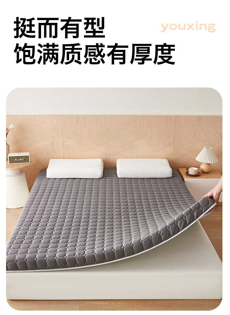• 91家纺网 家纺一手货源 找家纺 (总)芊梵床垫 2026新款多多爆款立体硬质棉床垫,三菱格-白,菱格-灰