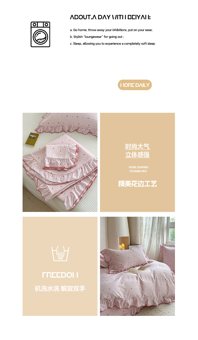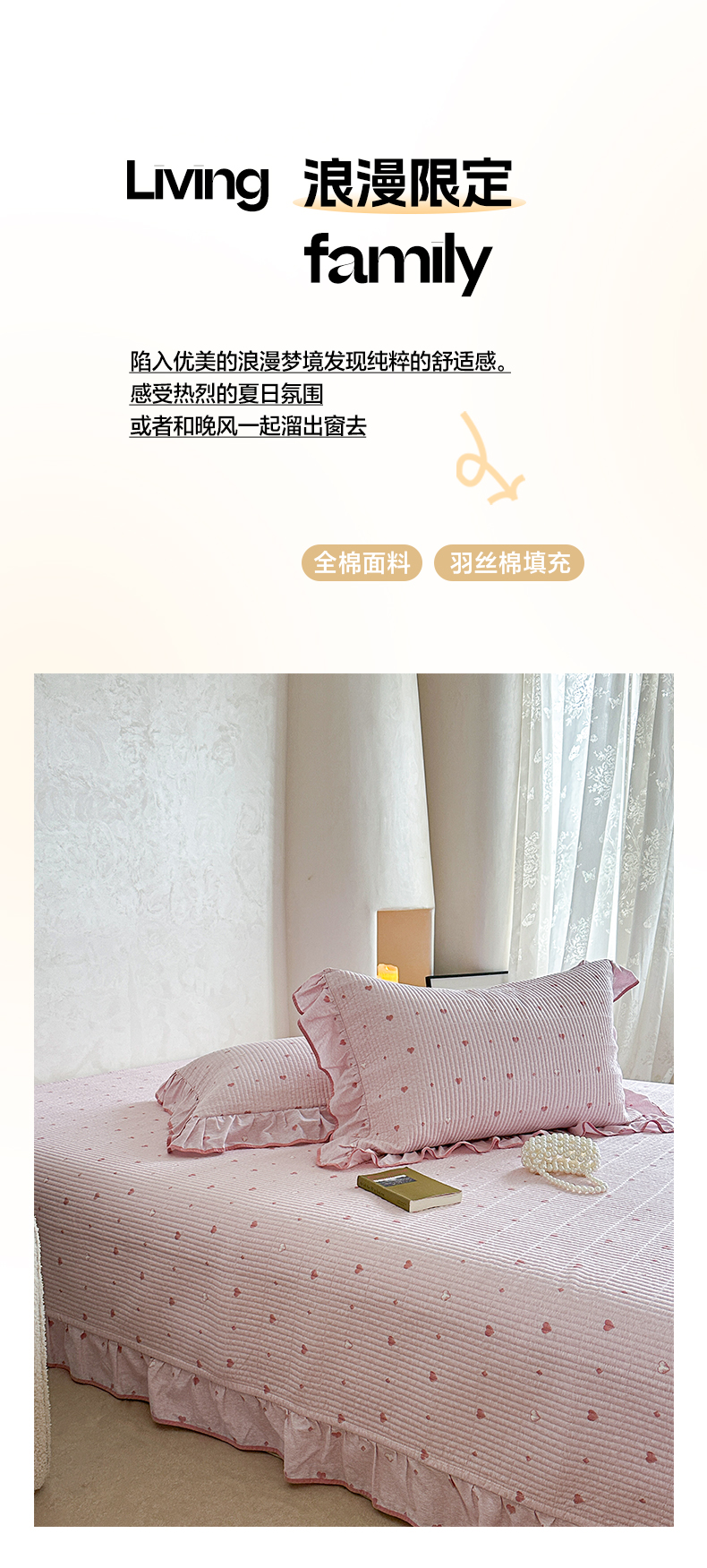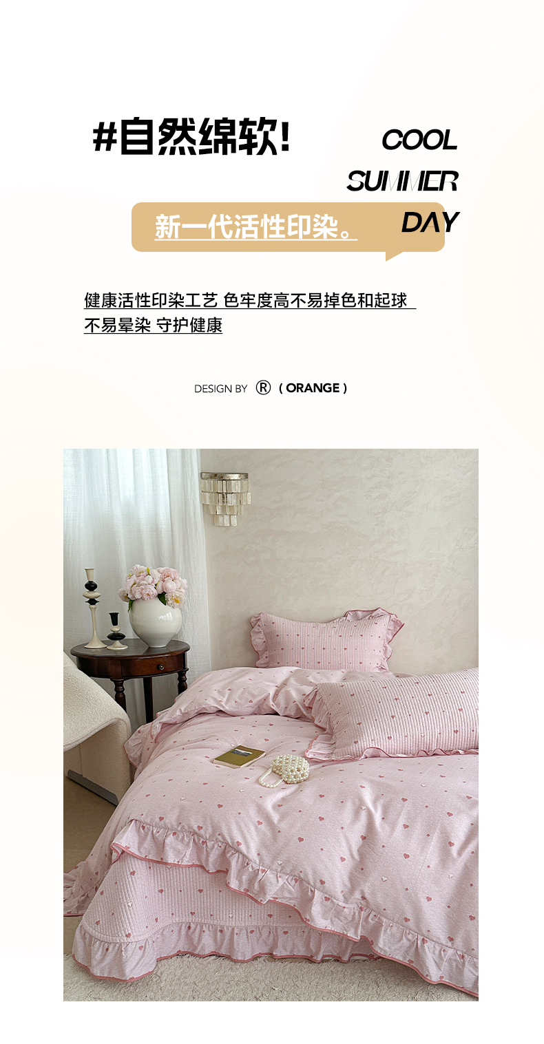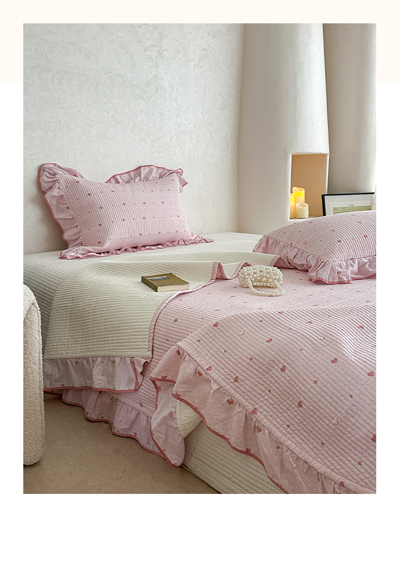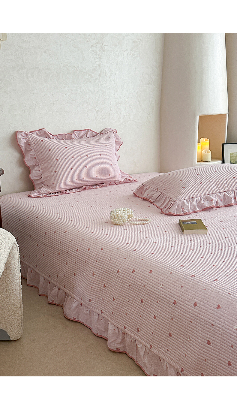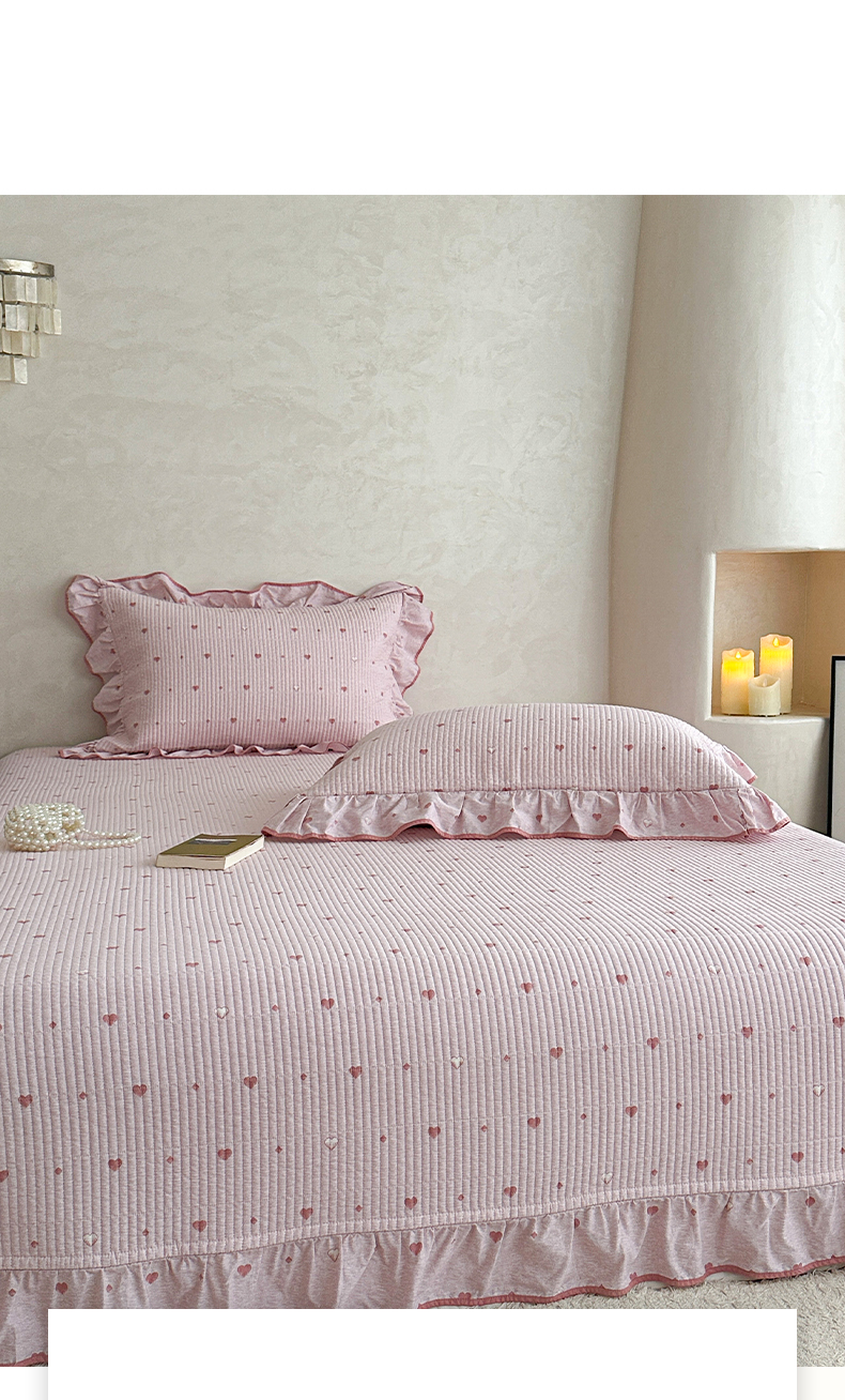 商品名称:琳可家居2025新款全棉印花花边床盖可搭配同款被套 爱心-仙女粉
