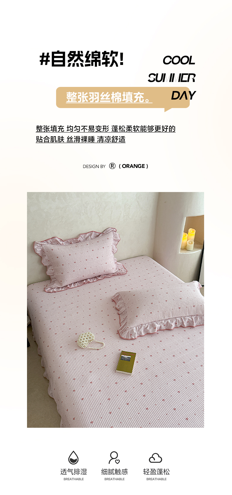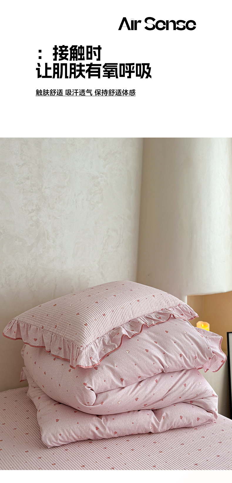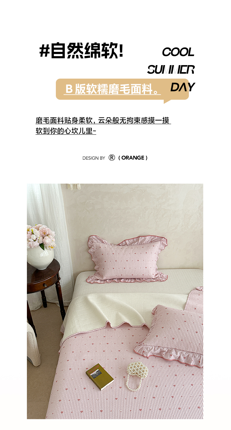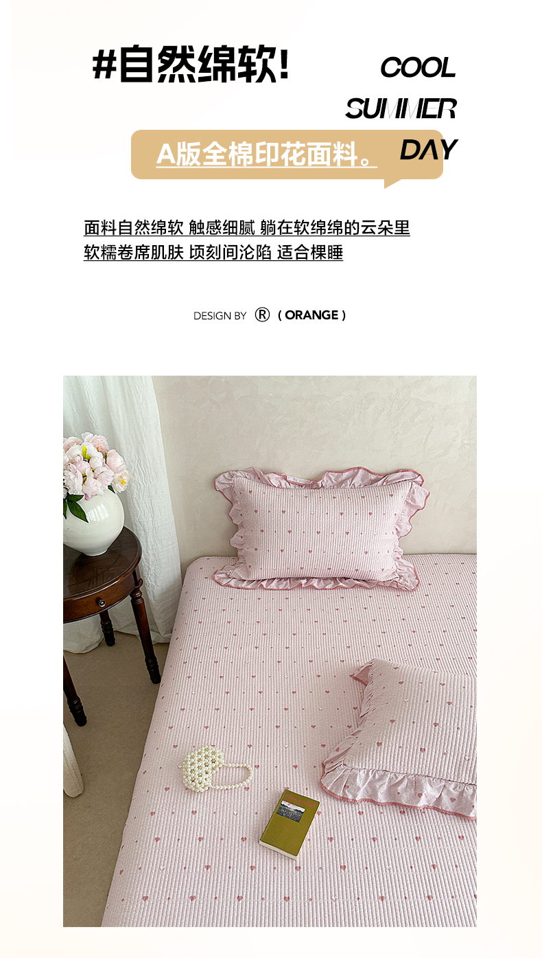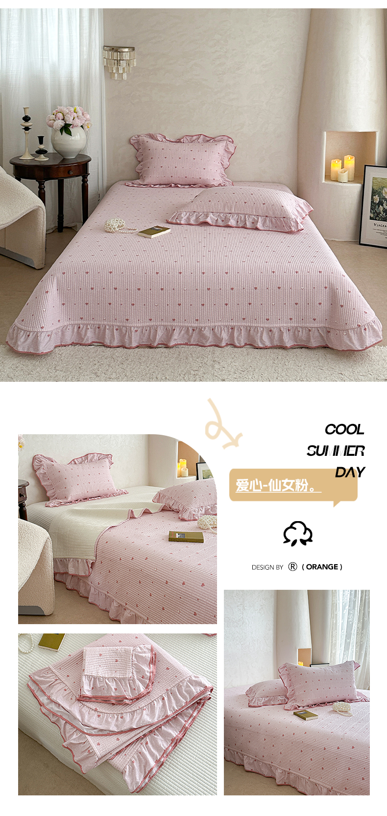 商品名称:琳可家居2025新款全棉印花花边床盖可搭配同款被套 爱心-仙女粉