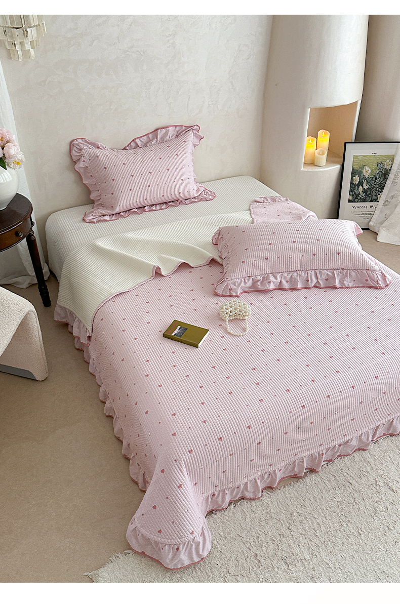 琳可家居2025新款全棉印花花边床盖可搭配同款被套 爱心-仙女粉