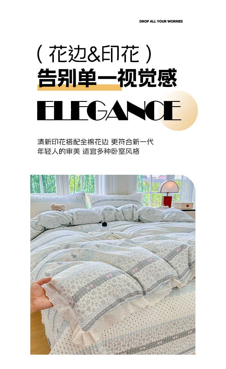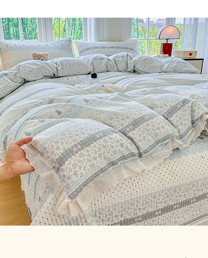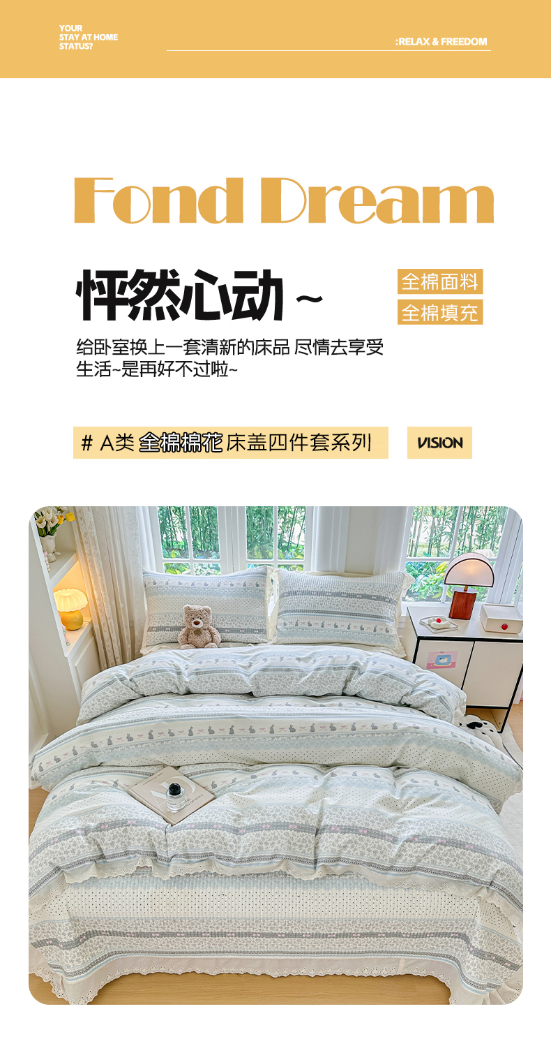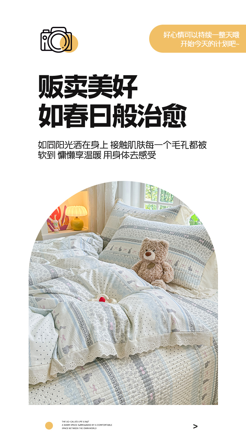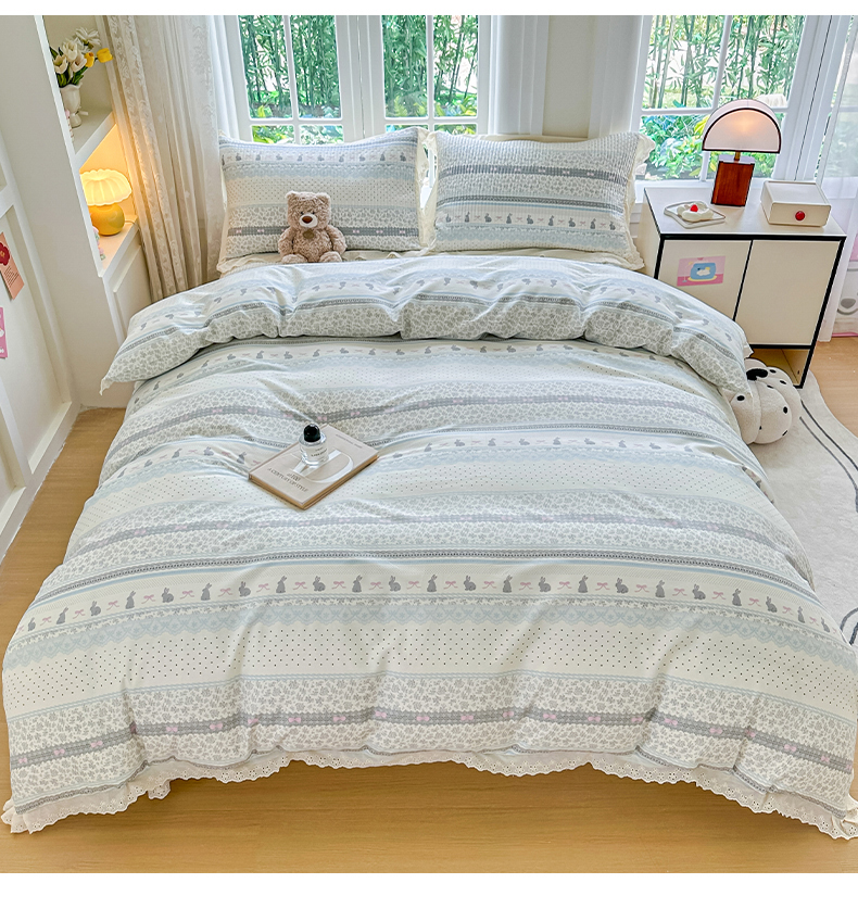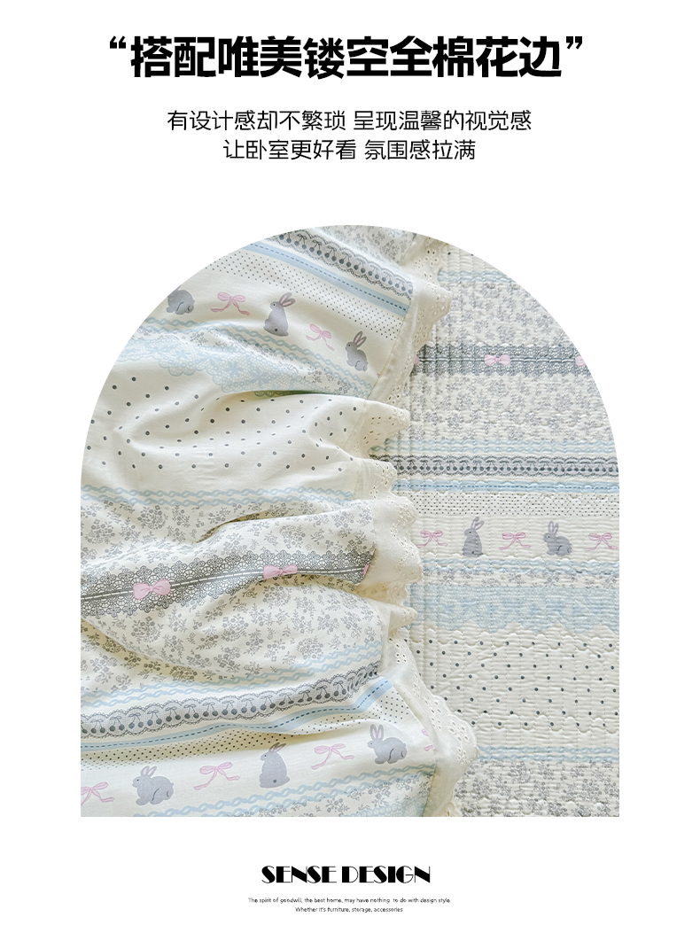 当前位置: 91家纺网 > 商品网购 > 床品套件 > 四件套 > 全棉普通四件套 > 岚吉家纺 2025新款全棉棉花床盖四件套 花边兔
