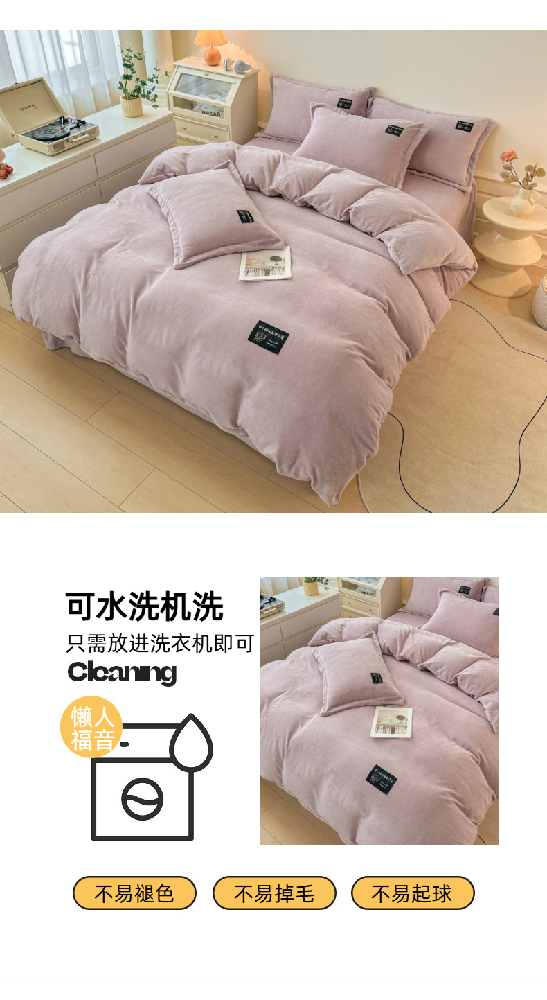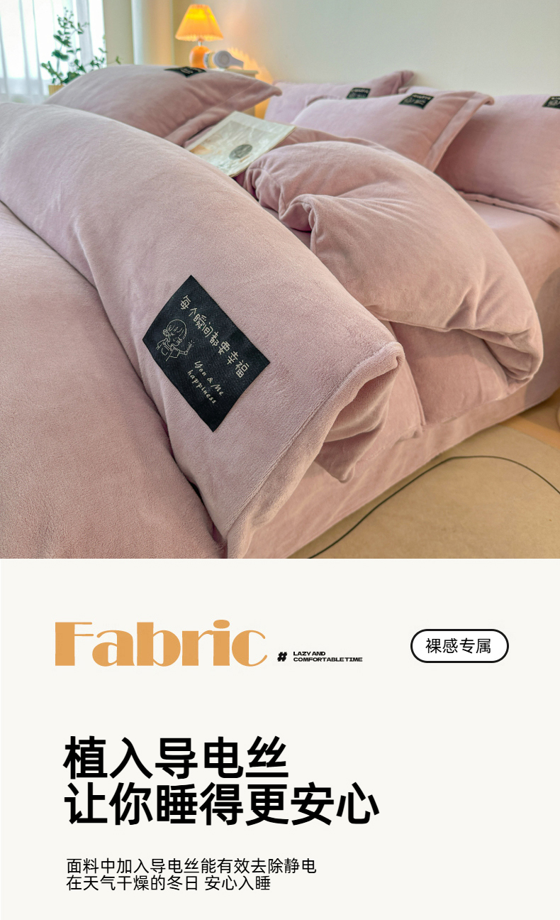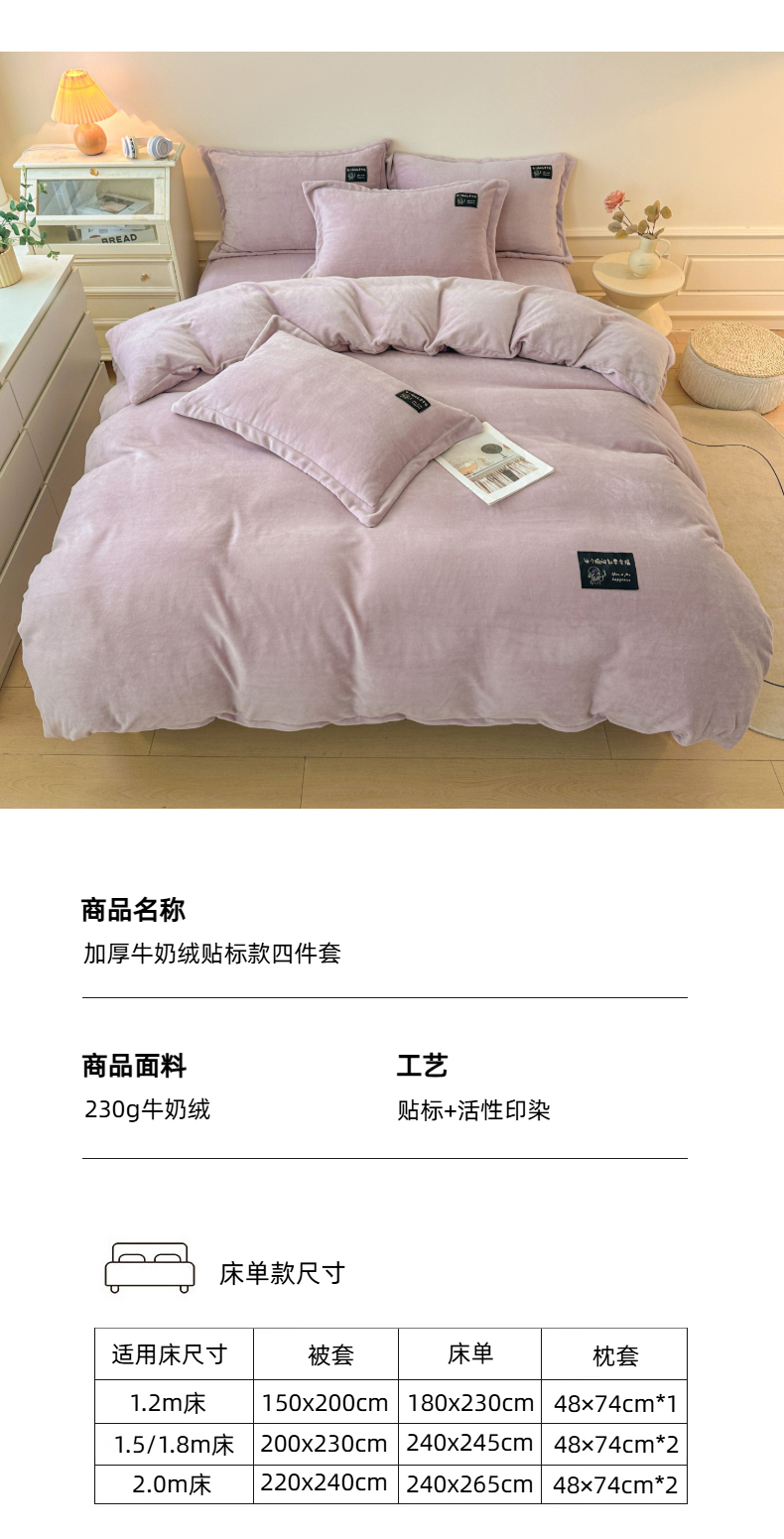 商品名称:(总)莱越家纺 2025新款高克重牛奶绒纯色贴标款四件套(8斤重)