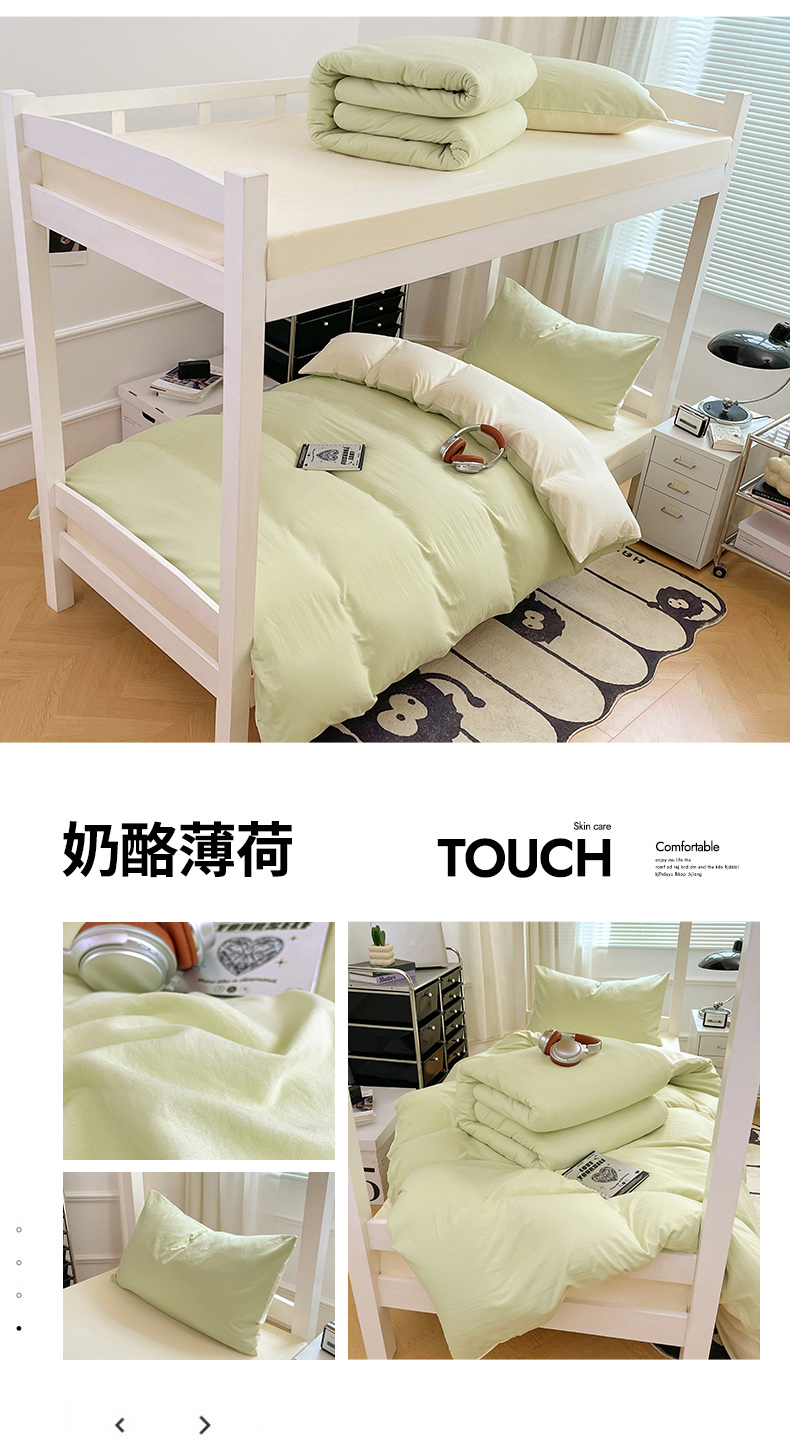 当前位置: 91家纺网 > 商品网购 > 床品套件 > 四件套 > 水洗棉四件套 > 梦卓家纺 2025新款学生宿舍上下铺纯色水洗棉三件套 奶酪薄荷