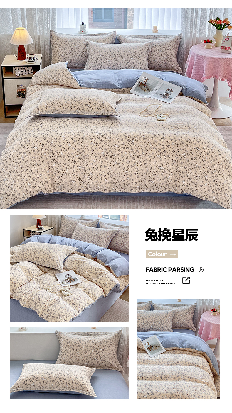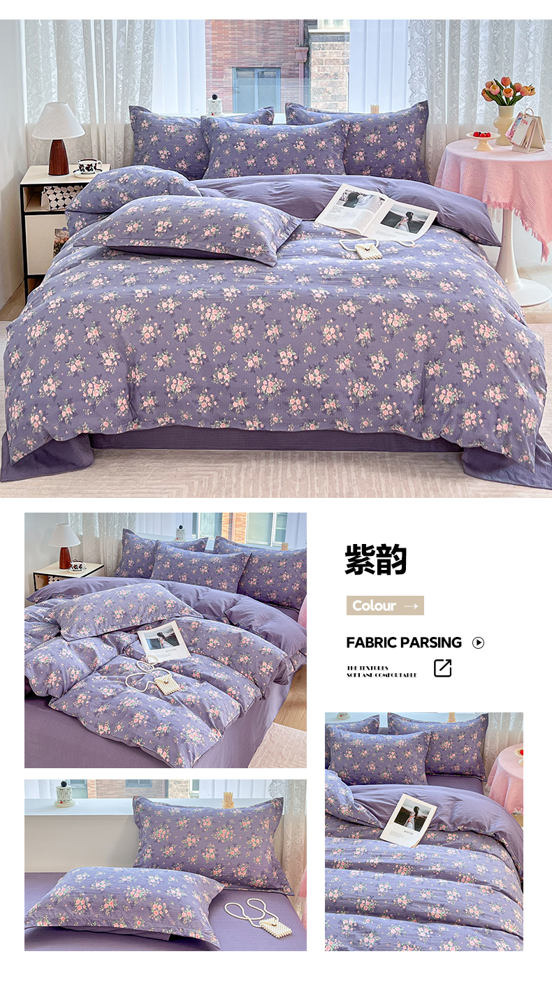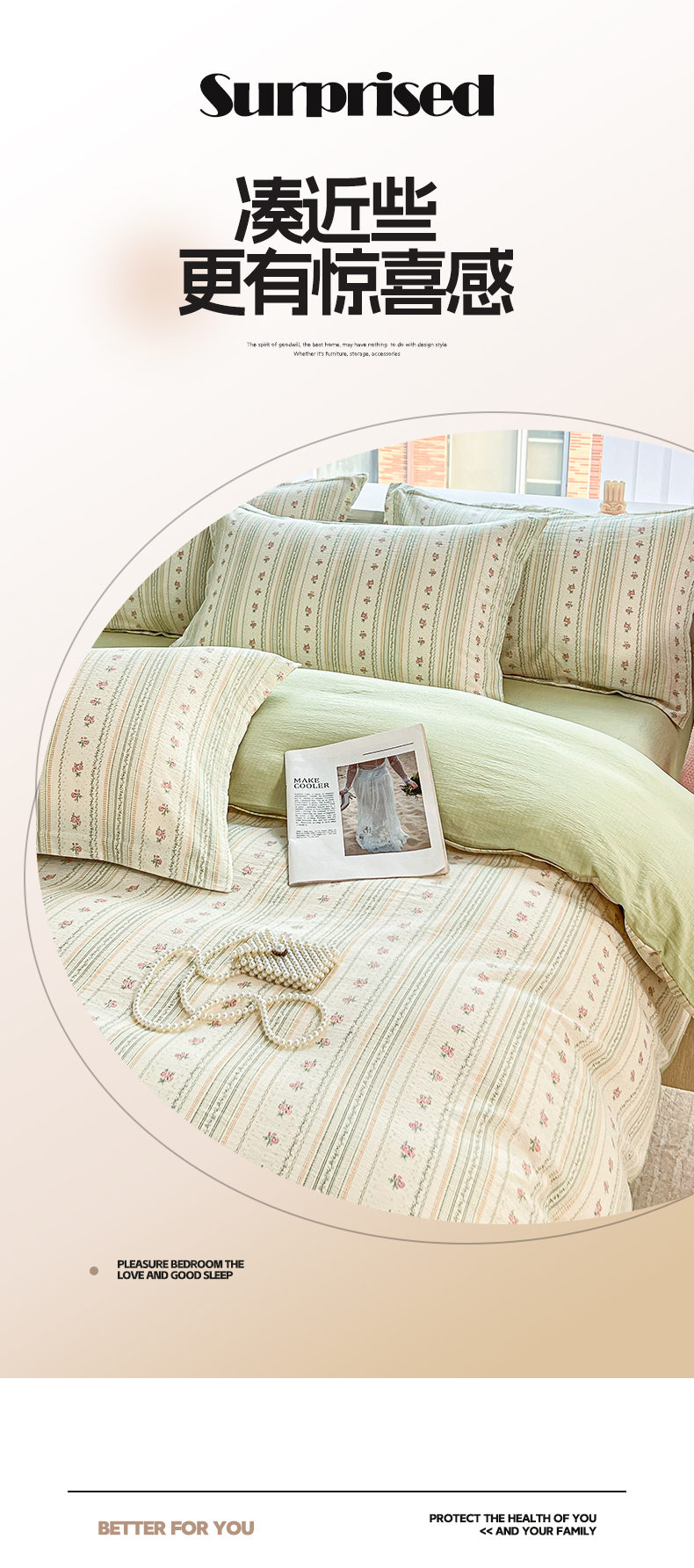 (总)麦田家纺 2025新款A类云感木棉皱皱双层纱印花四件套,春意浓,繁花,花颜,简意,开心小熊,腊肠犬,浪漫花语,免挽星辰,甜心格,小蓝町,樱桃格,紫韵