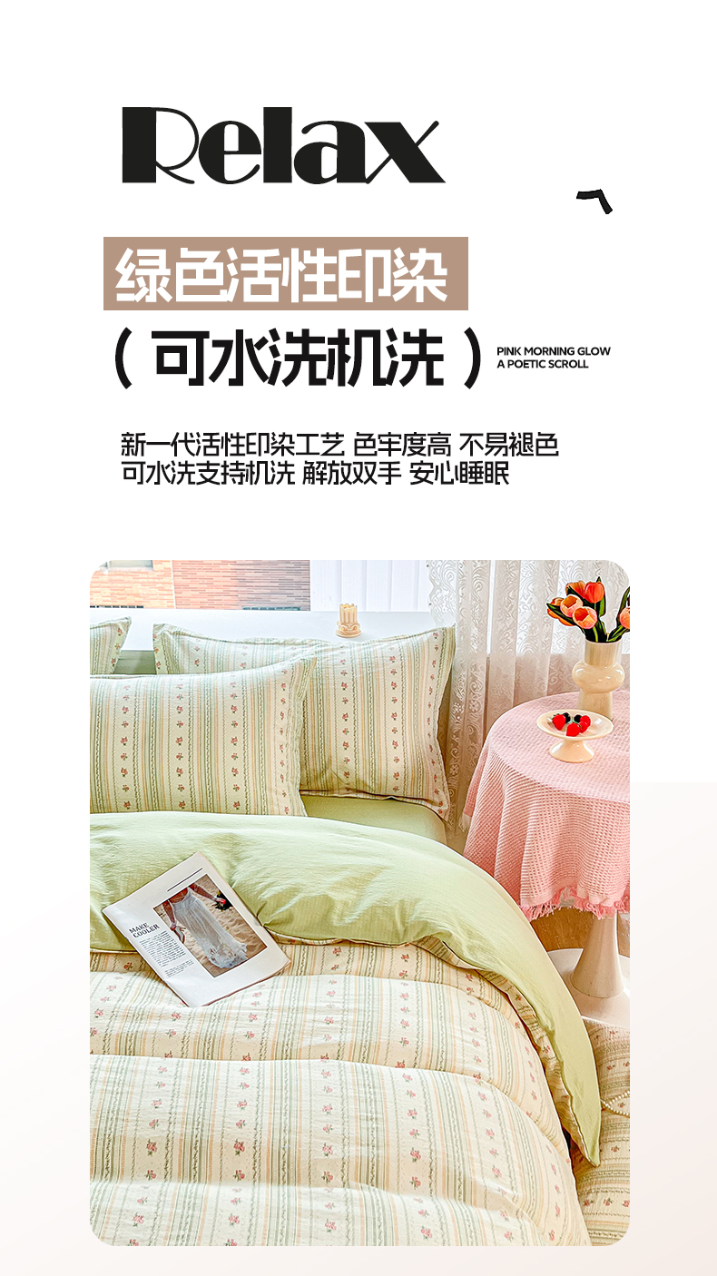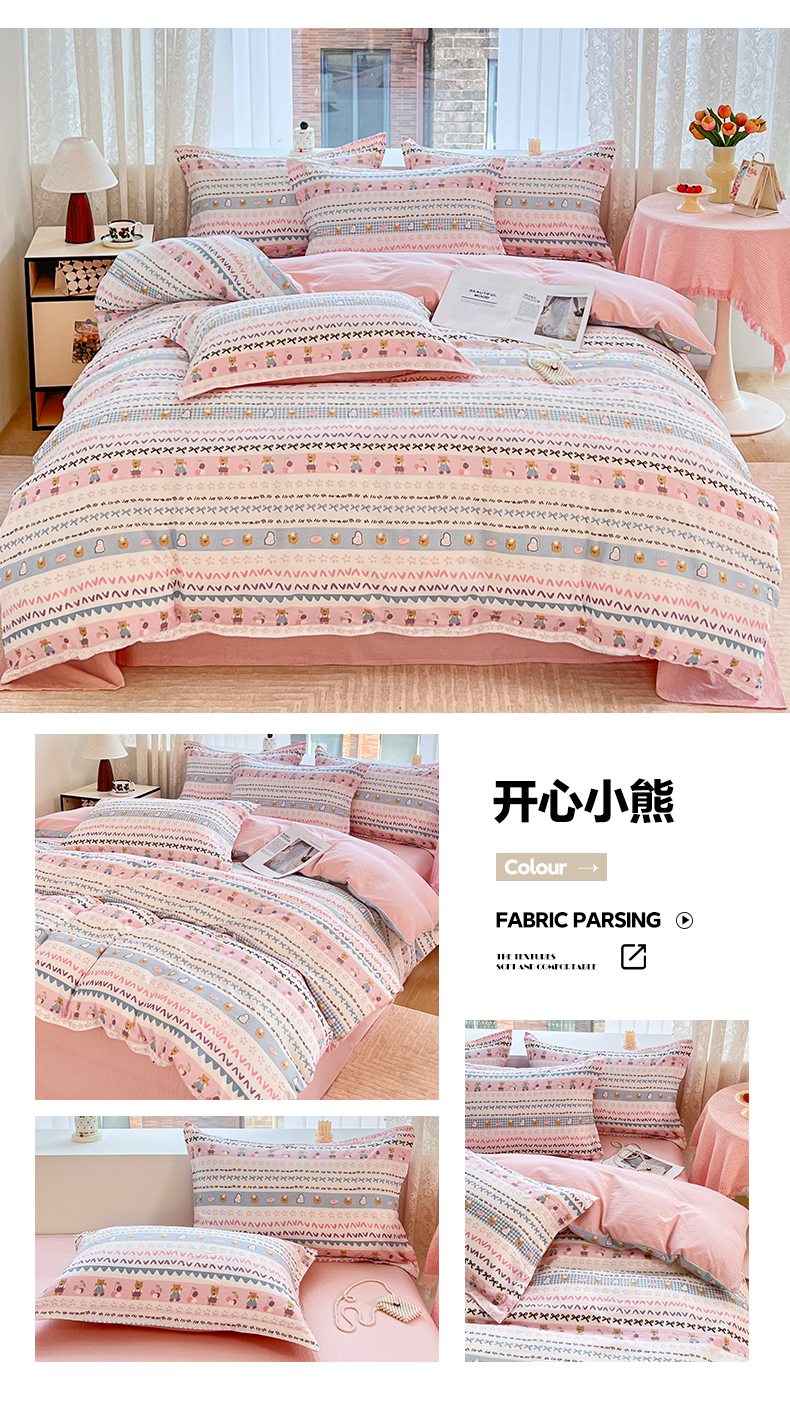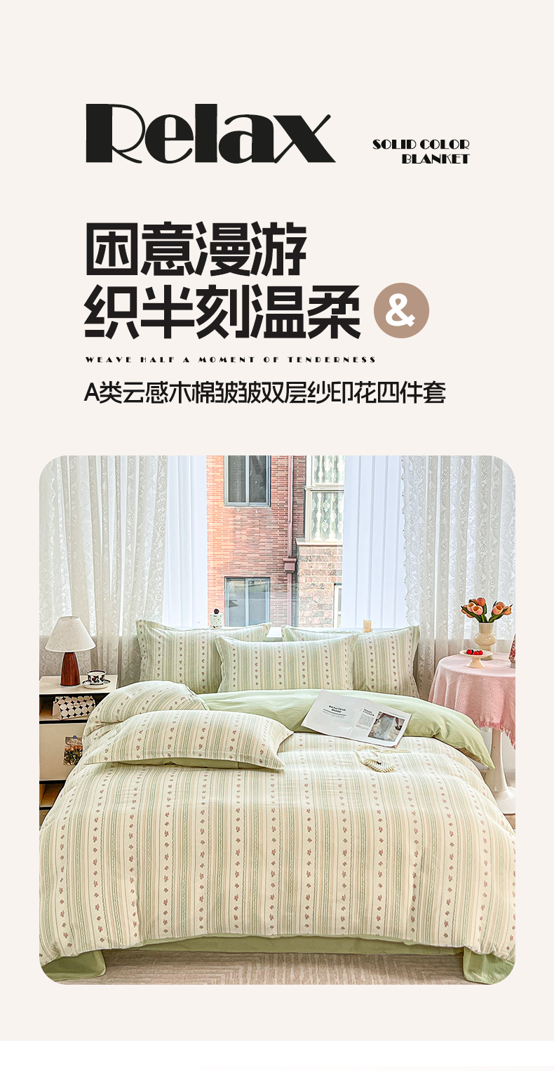 (总)麦田家纺 2025新款A类云感木棉皱皱双层纱印花四件套,春意浓,繁花,花颜,简意,开心小熊,腊肠犬,浪漫花语,免挽星辰,甜心格,小蓝町,樱桃格,紫韵