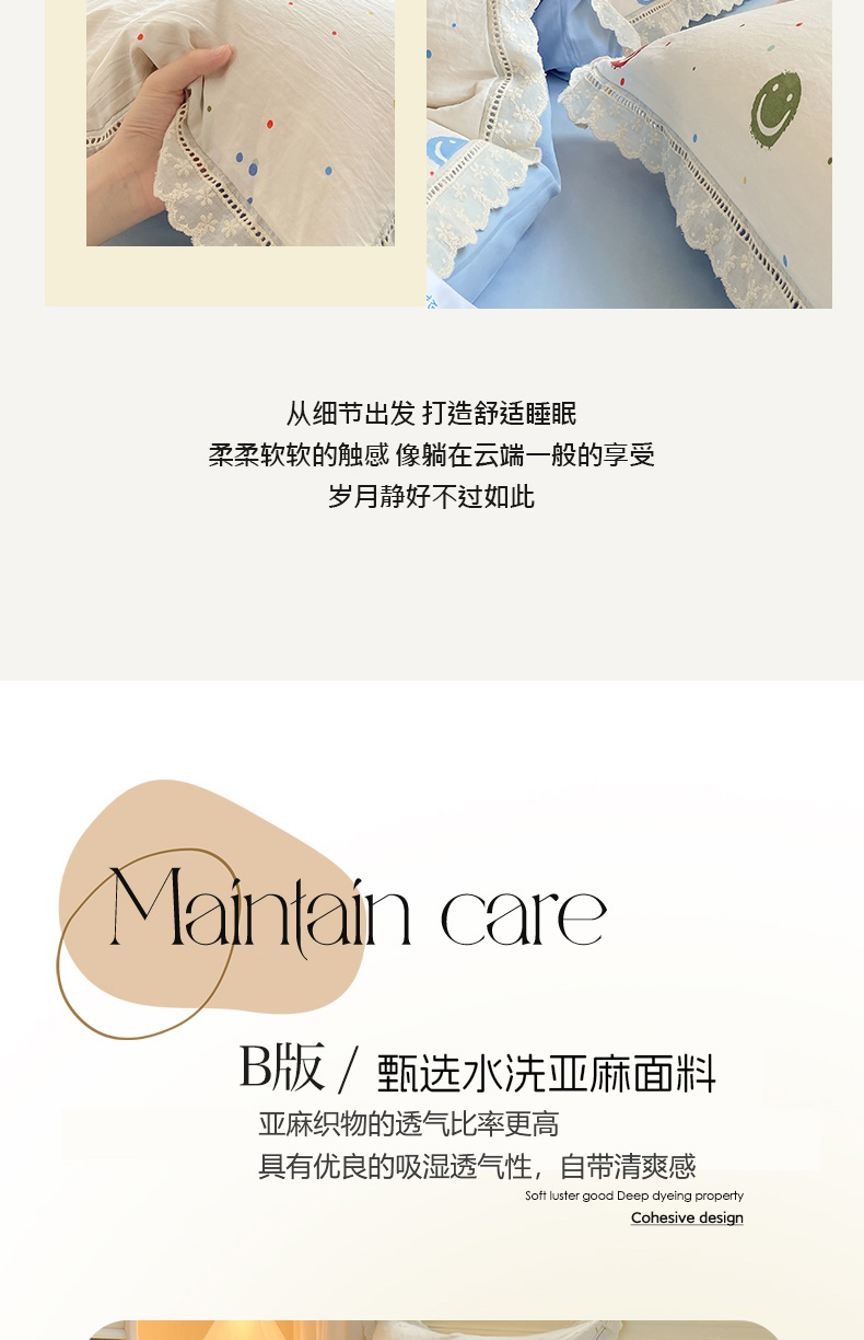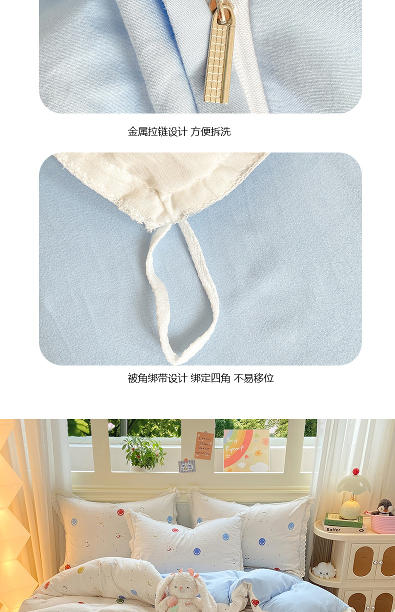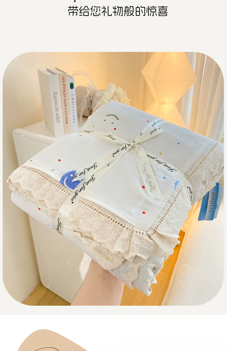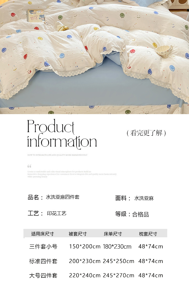 商品名称:大麦家纺 25年新款高克重印花水洗棉花边四件套 开心笑脸