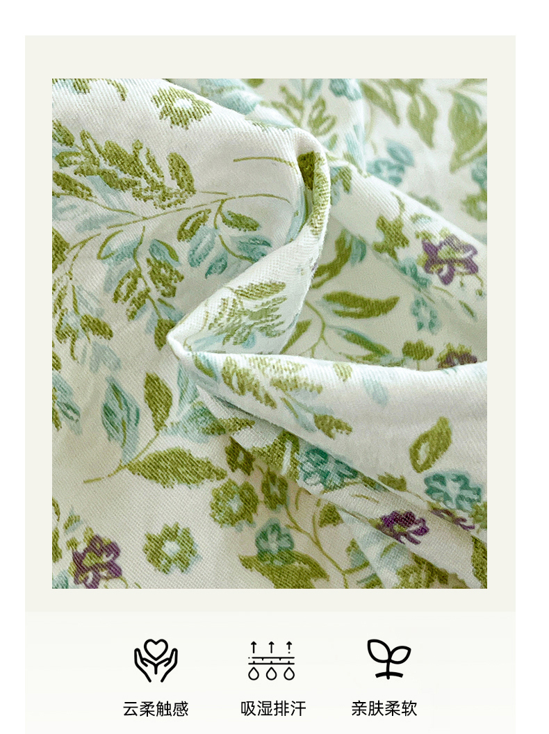 商品名称:赛丽雅 2025新款花边韩版水洗珍珠棉四件套 从草集-绿