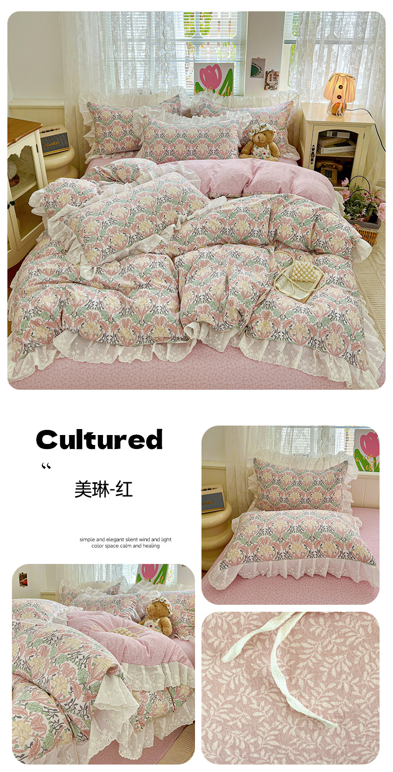 总(赛丽雅)2025秋冬新品130克加厚复古风印花磨毛四件套,风木槿,可颂,暮雪-灰,悄颜,秋恋-红,砚秋