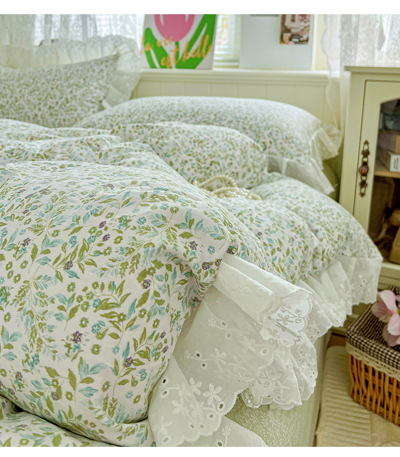 赛丽雅 2025新款花边韩版水洗珍珠棉四件套 从草集-绿