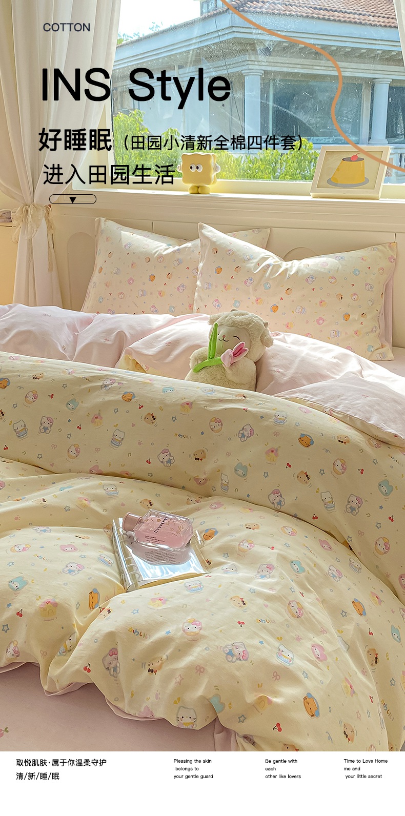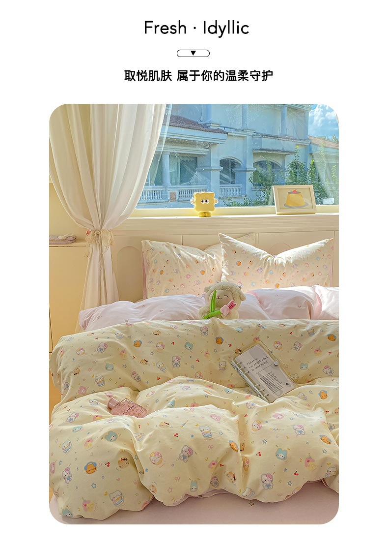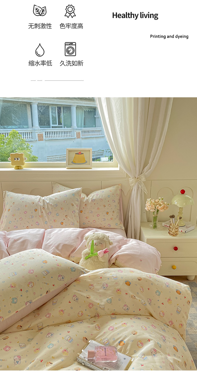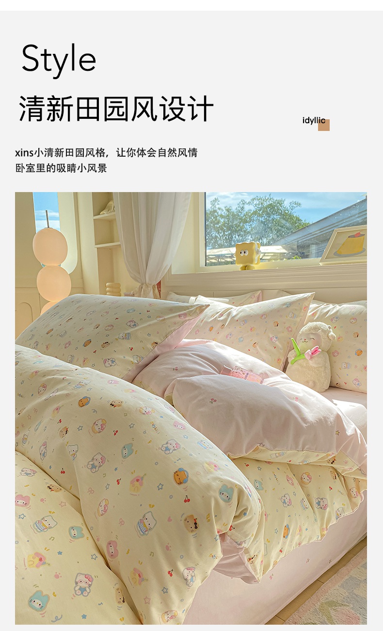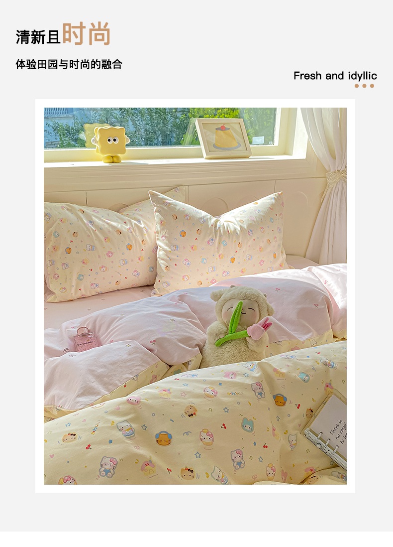 商品名称:黑马家居 2025新款13070全棉田园小清新四件套系列 凯蒂猫