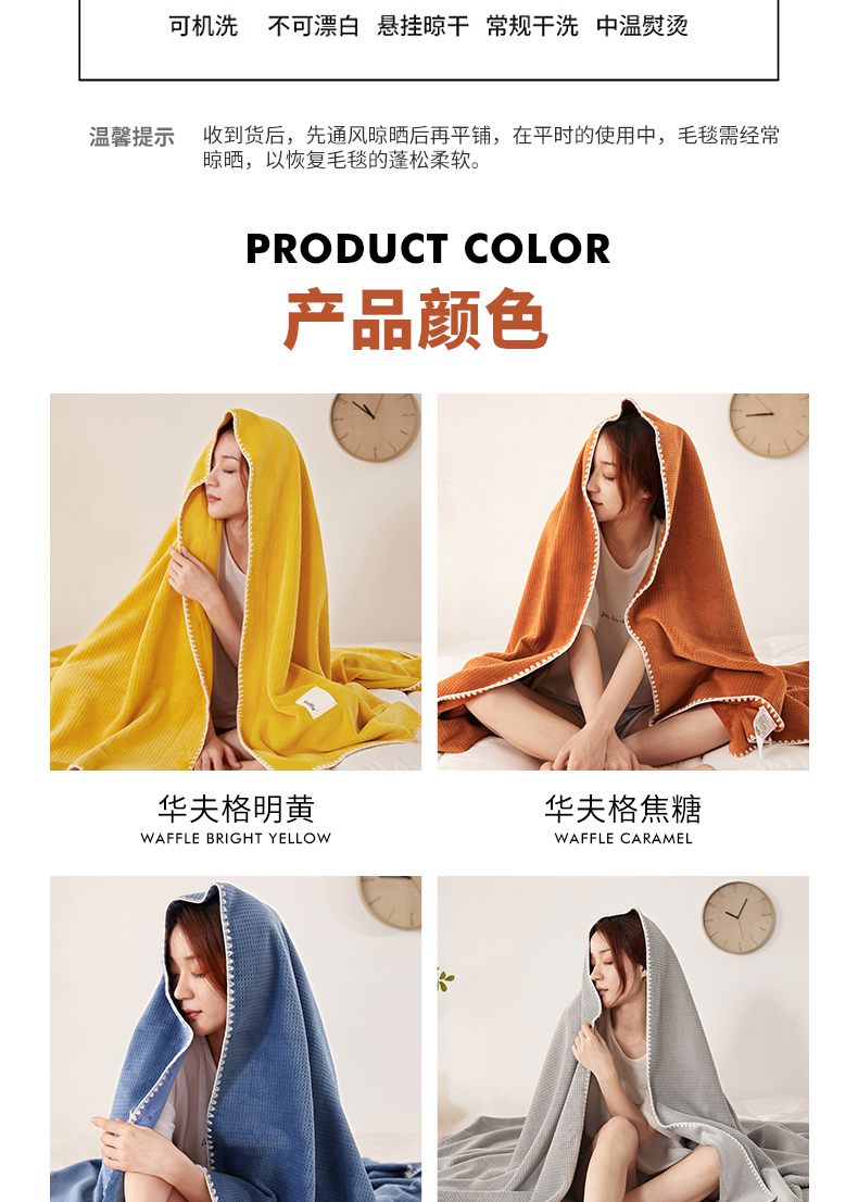 (总)莱家富 2026新款500克加厚A类华夫格牛奶绒双面毛毯轻奢休闲盖毯子多尺寸多功能午睡办,组合图仅做展示,都市灰,湖蓝,焦糖,明黄,奶白,嫩粉,苹果绿