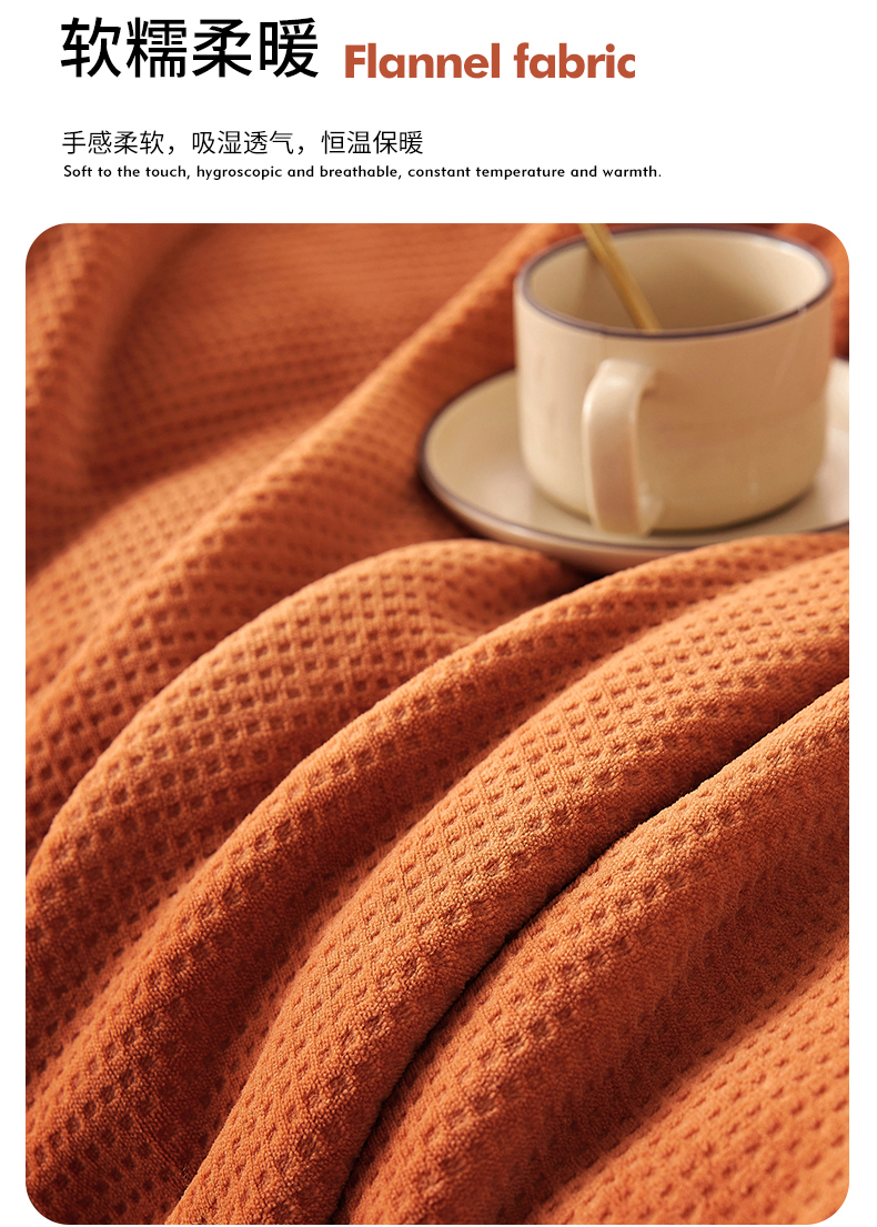 莱家富 2026新款跨境A类华夫格牛奶绒双面毛毯轻奢休闲盖毯子多功能午睡办公室用毯 蓝色