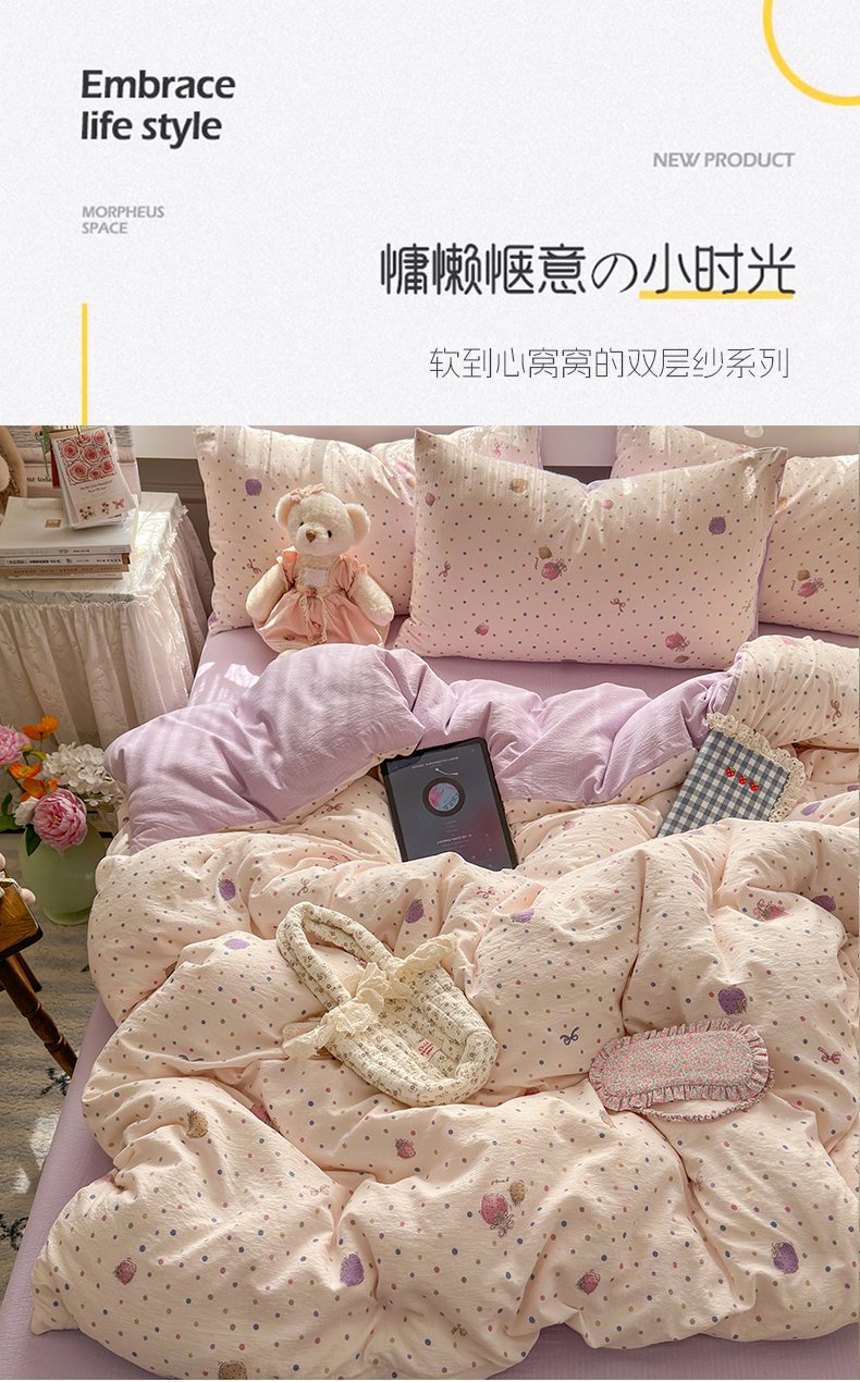 当前位置: 91家纺网 > 商品网购 > 床品套件 > 四件套 > 双层纱四件套 > 丽美人家纺 2025新款【全尺寸不断货】高克重木棉提花双层纱四件套 QB小甜心