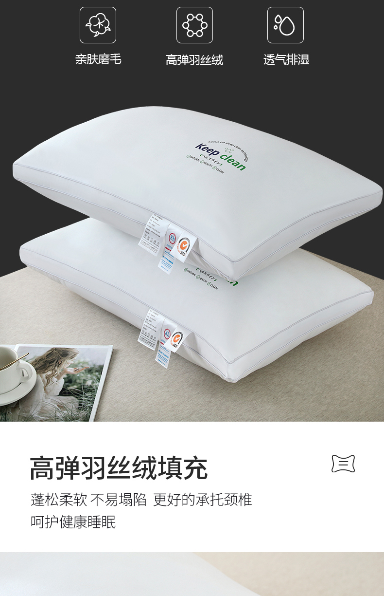 商品名称:永乐枕芯 2025新款keep磨毛羽丝绒枕枕头枕芯 白色双边