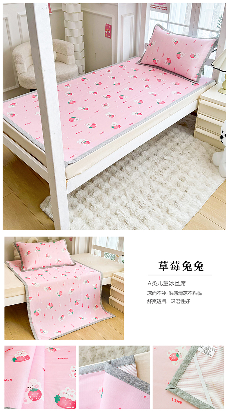 当前位置: 91家纺网 > 商品网购 > 床上用品 > 凉席 > 冰丝席 > 萌宝家纺 2025新款小清新卡通学生宿舍凉席幼儿园小学生冰丝席冰藤软席 草莓兔兔